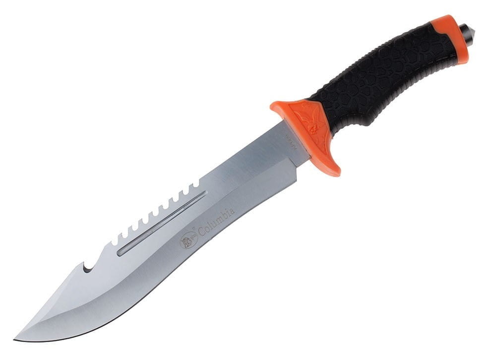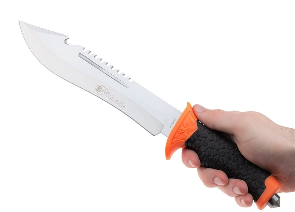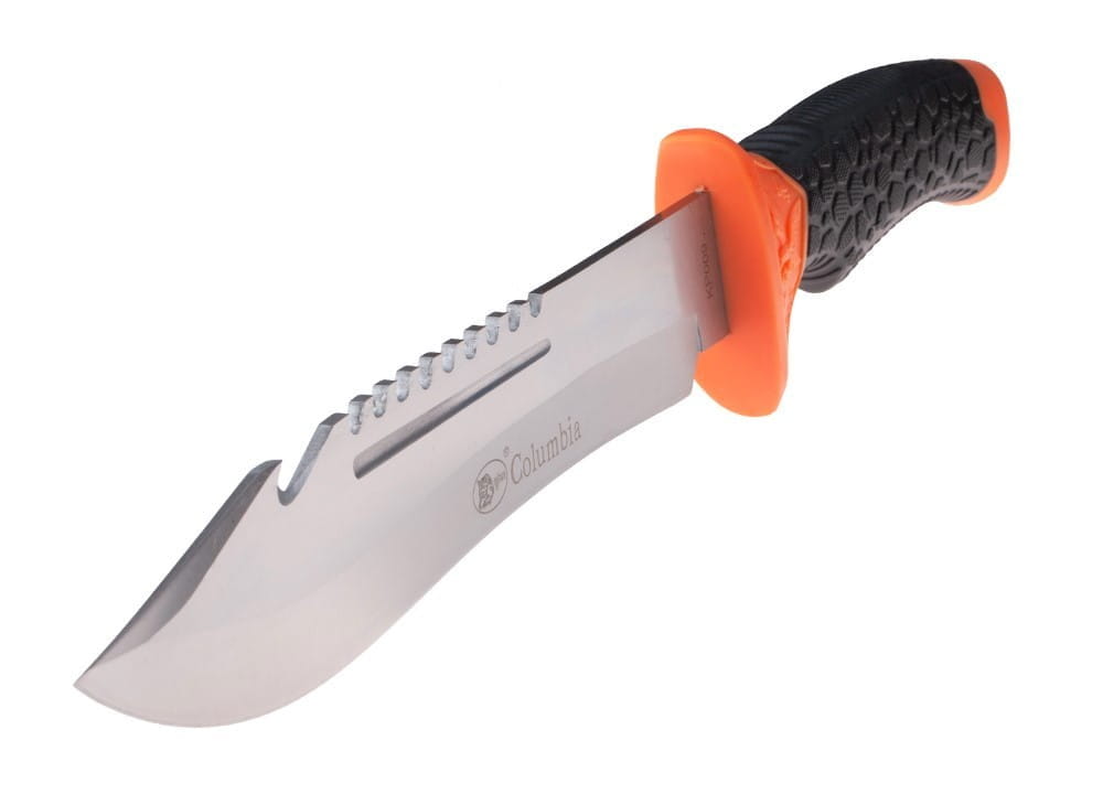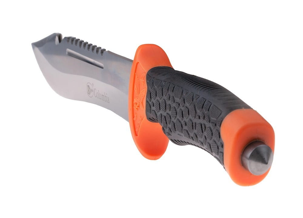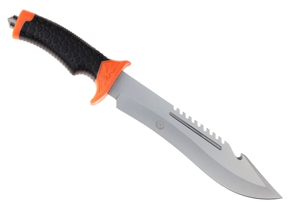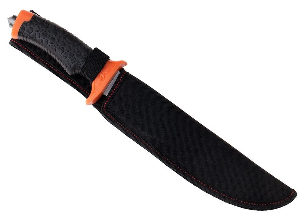 Nóż ratowniczy został wyposażony w pomarańczowy jelec, który skutecznie chroni dłoń przed skaleczeniem oraz poprawia widoczność.