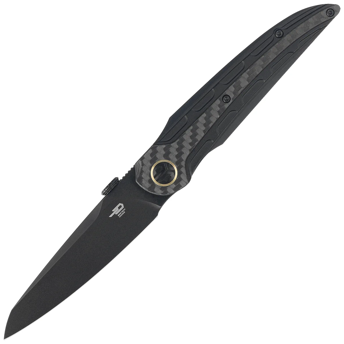 Nóż składany Bestech Prydwen Black Titanium/Regular Carbon Fiber, Black PVD MagnaCut by Kombou (BT2409D)