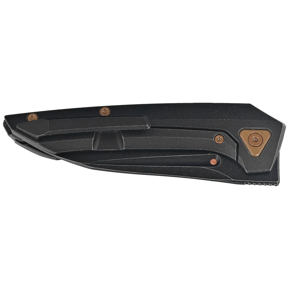 Rękojeść - lity tytan 6AL4V w kolorach czerni i brązu, połączone ze sobą masywnym tytanowym backspacerem. Prostota i solidność konstrukcji dają pewność wieloletniego użytkowania. Oś piwota została umieszczona wewnątrz trójkątnej wkładki ze stali. Klips jednopozycyjny (prawa), wykonany z tytanu, umożliwia przenoszenie noża w pozycji tip-up.
