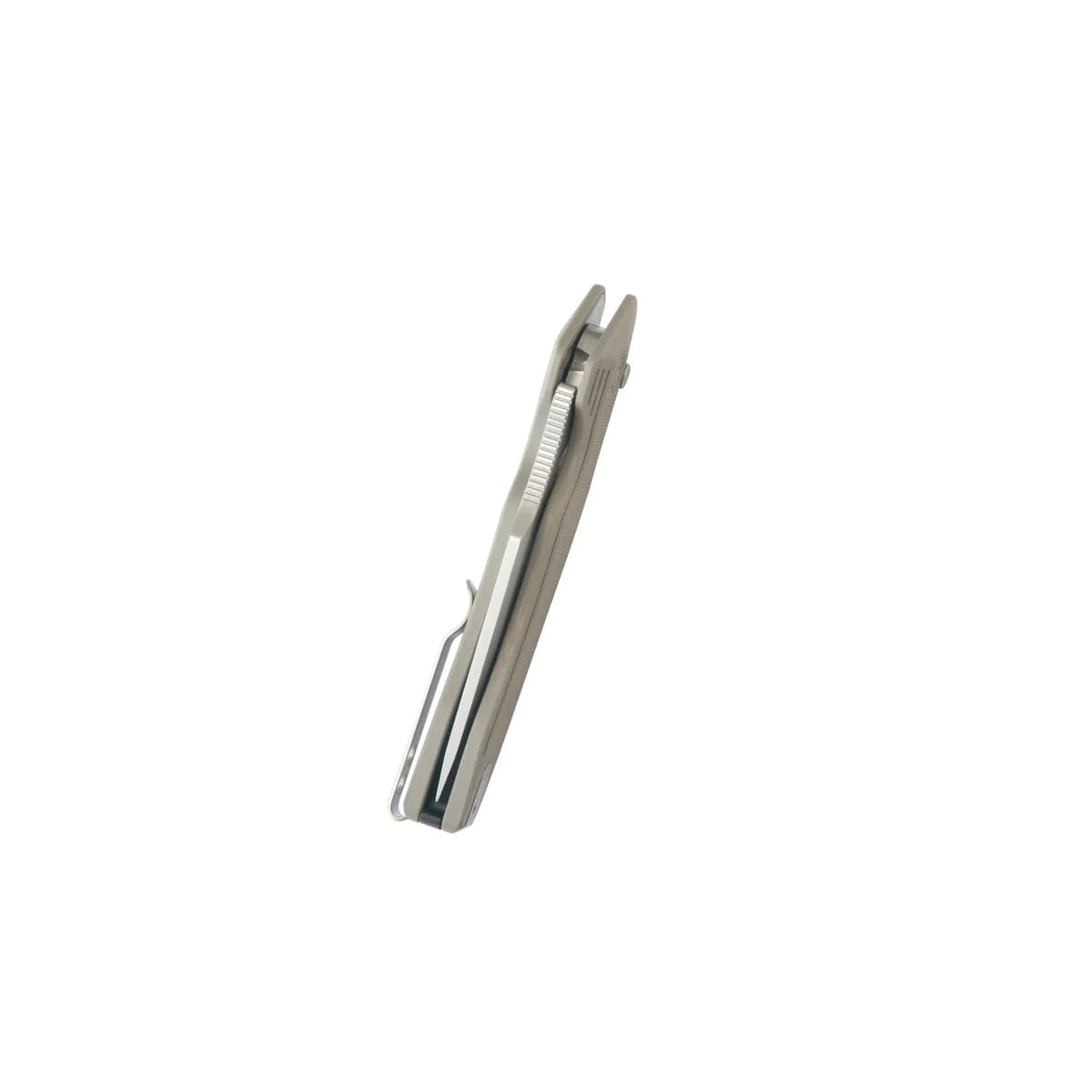 Rękojeść - okładziny z kompozytu G10, materiału niezwykle wytrzymałego mechanicznie i praktycznie całkowicie odpornego na warunki atmosferyczne i działanie chemikaliów, teksturowane dla poprawienia pewności uchwytu, przykręcono do stalowej ramy noża. Masywny backspacer zapewnia pożądaną sztywność. Prosta, solidna konstrukcja daje pewność wieloletniego użytkowania. Oś pivota zdobi stylizowane logo producenta. Dwupozycyjny (prawa/lewa) metalowy klips deep carry pozwala przenosić dyskretnie nóż w kieszeni w pozycji tip-up (czubkiem ostrza do góry). W zagłębieniu backspacera miejsce na zamocowanie linki zabezpieczającej lub ozdobnej.