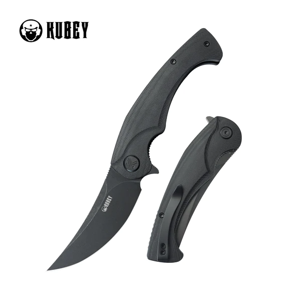 Nóż składany Kubey Scimitar Black G10, Black Stonewashed 14C28N (KU173L)