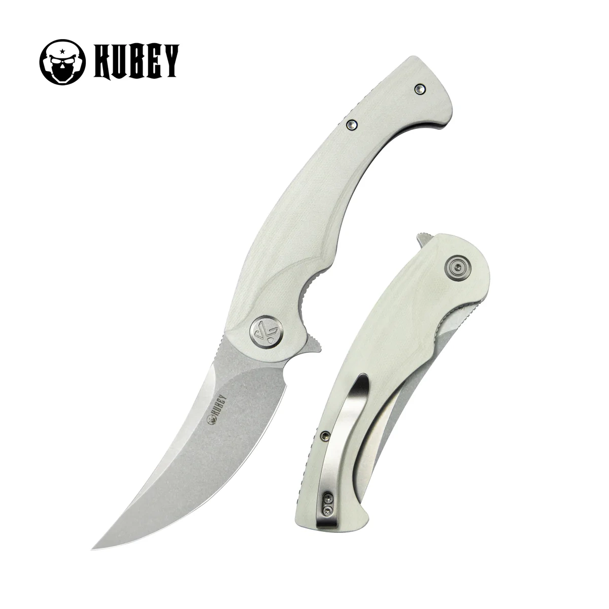 Nóż składany Kubey Scimitar White G10, Beadblasted 14C28N (KU173I)