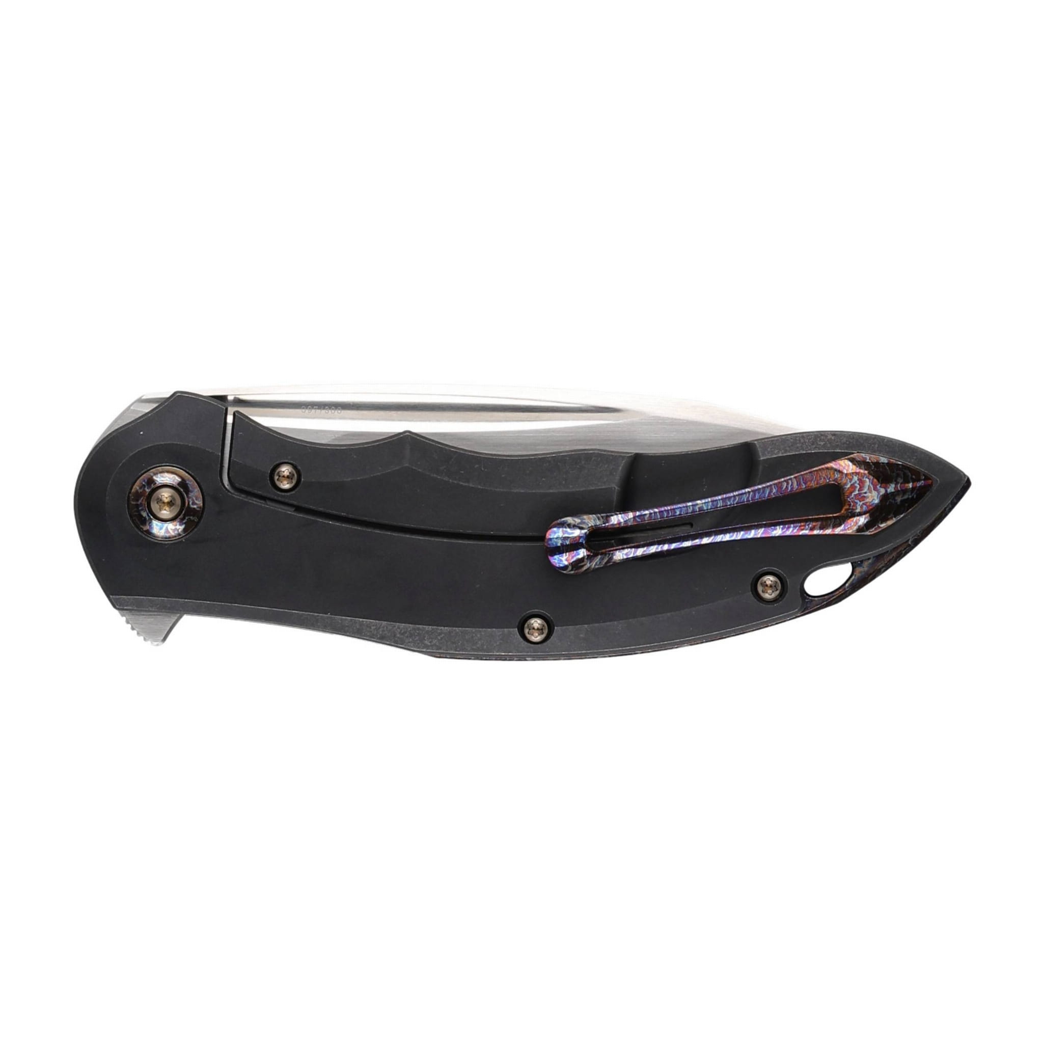 tytanowy klips umożliwiający przenoszenie noża w pozycji tip-up;