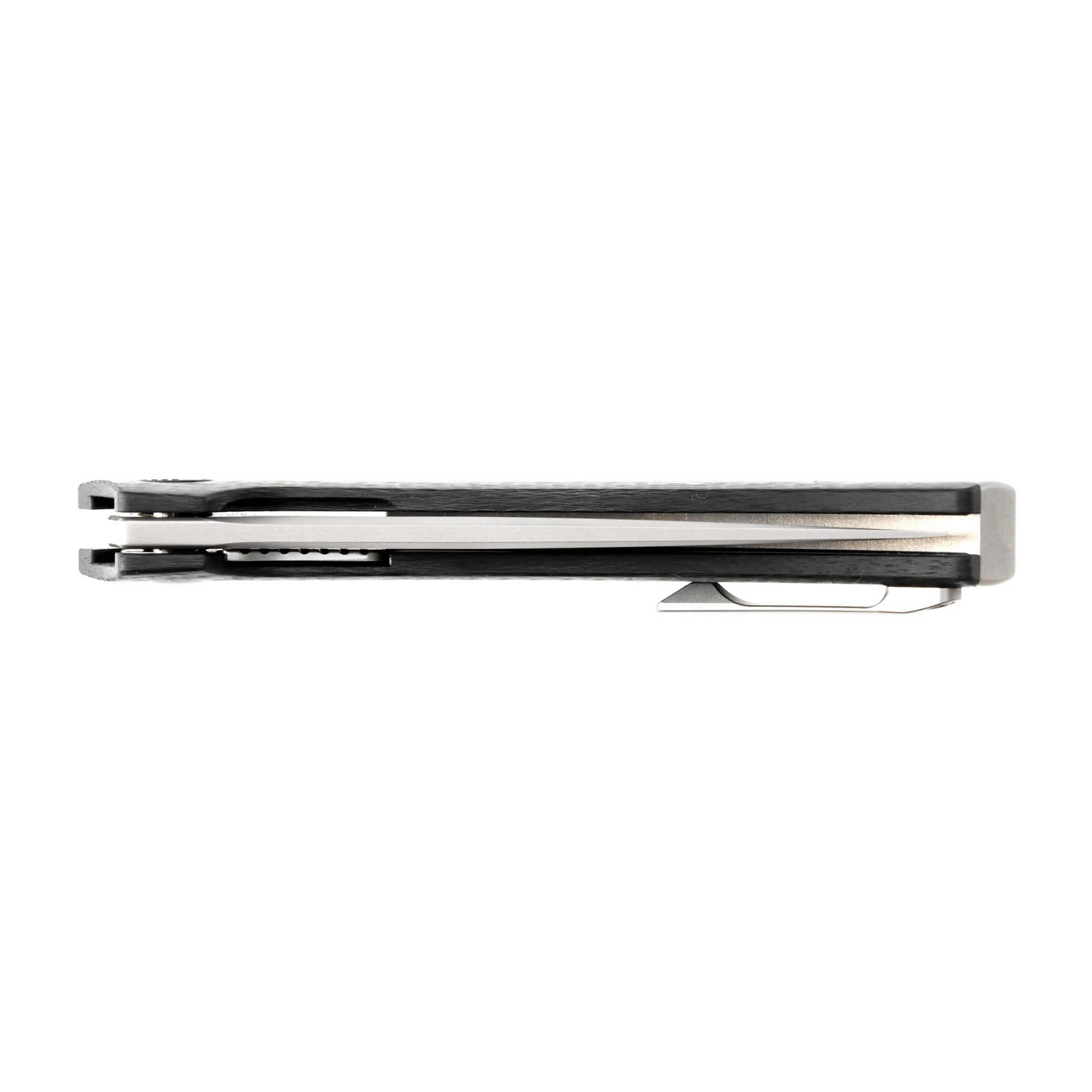 Okładziny noża wykonane zostały z włókna węglowego a charakteru dodaje im backspacer oraz klips wykonane z tytanu w szarym kolorze