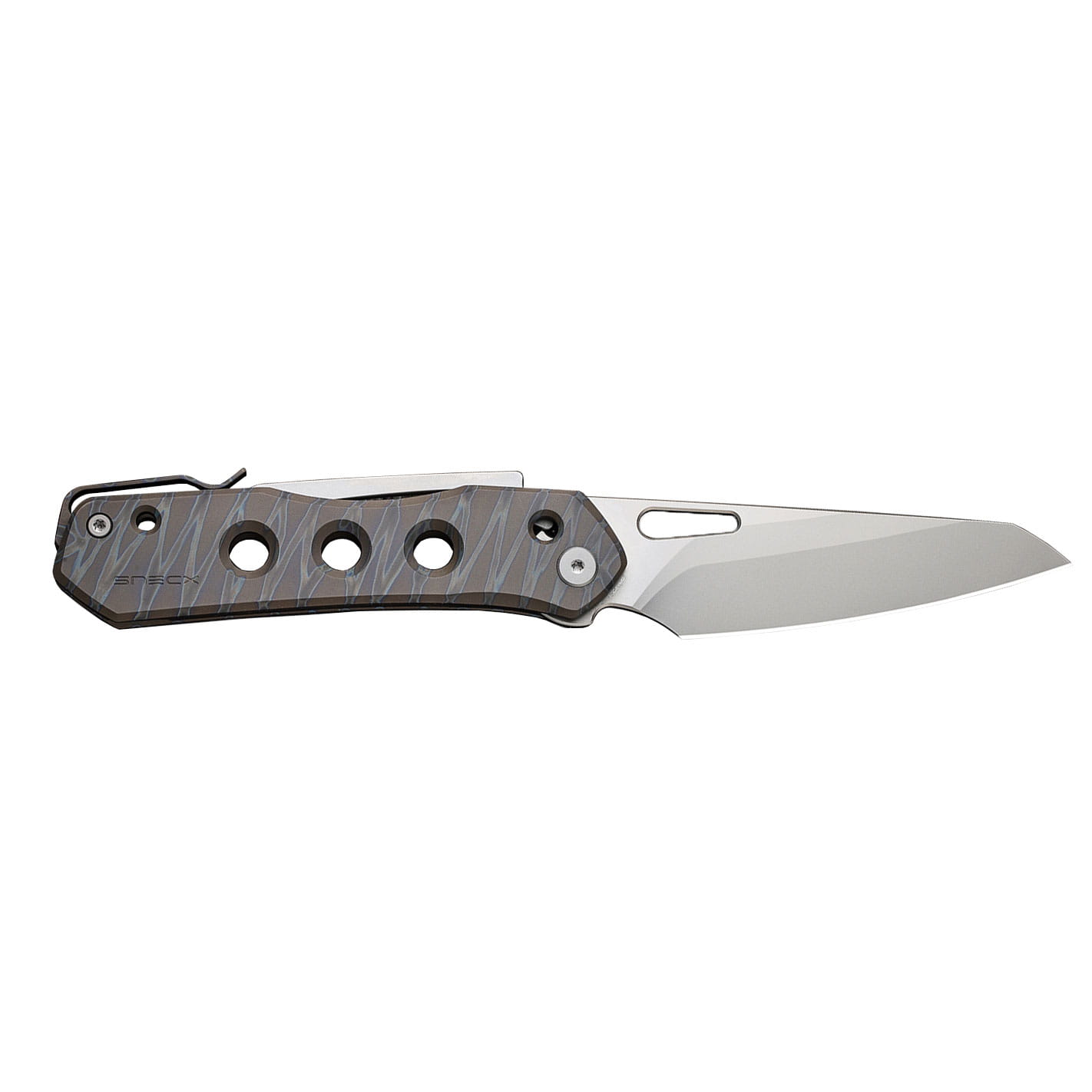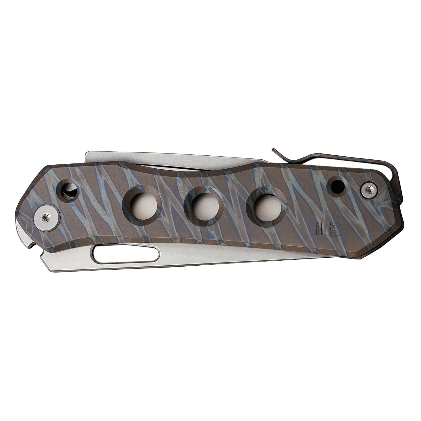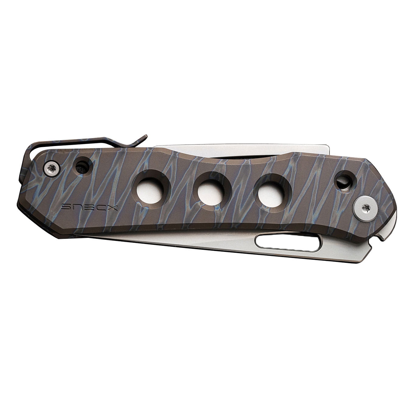 Dzięki obustronnemu tytanowemu klipsowi nóż można wygodnie przenosić w kieszeni spodni, kurtki lub plecaka.