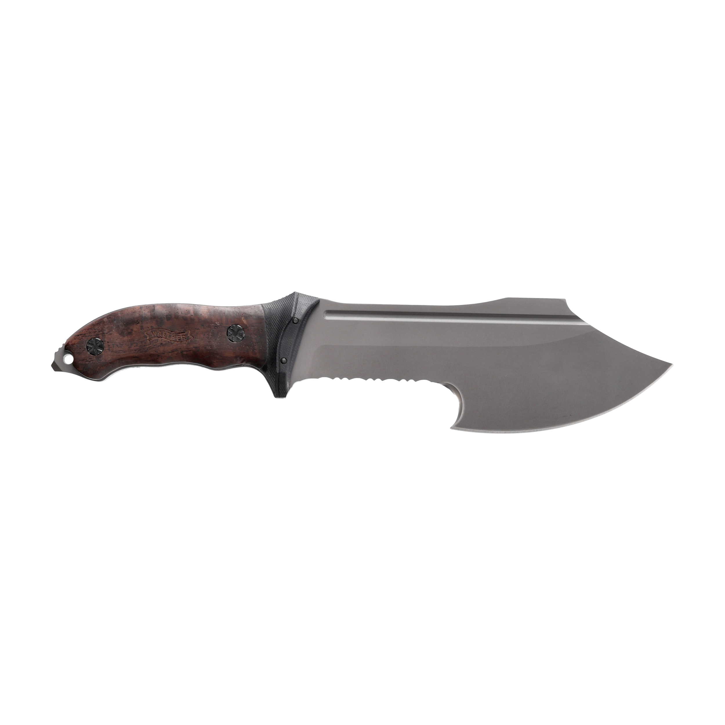 Gładkie ostrze na przodzie klingi świetnie sprawdzi się do karczowania i rąbania drewna. Ząbkowane ostrze poradzi sobie z cięciem włóknistego i twardego materiału, a hak idealnie sprawdzi się do podcinania korzenia i gałęzi. Wzdłuż całej klingi biegnie zbrocze (wgłębienie), które zmniejsza ciężar oraz pełni funkcję dekoracyjną. Dzięki takiej funkcjonalności Walther FTK XXL jest pełnowartościowym narzędziem do pracy w terenie, które sprosta nawet najcięższym zadaniom.