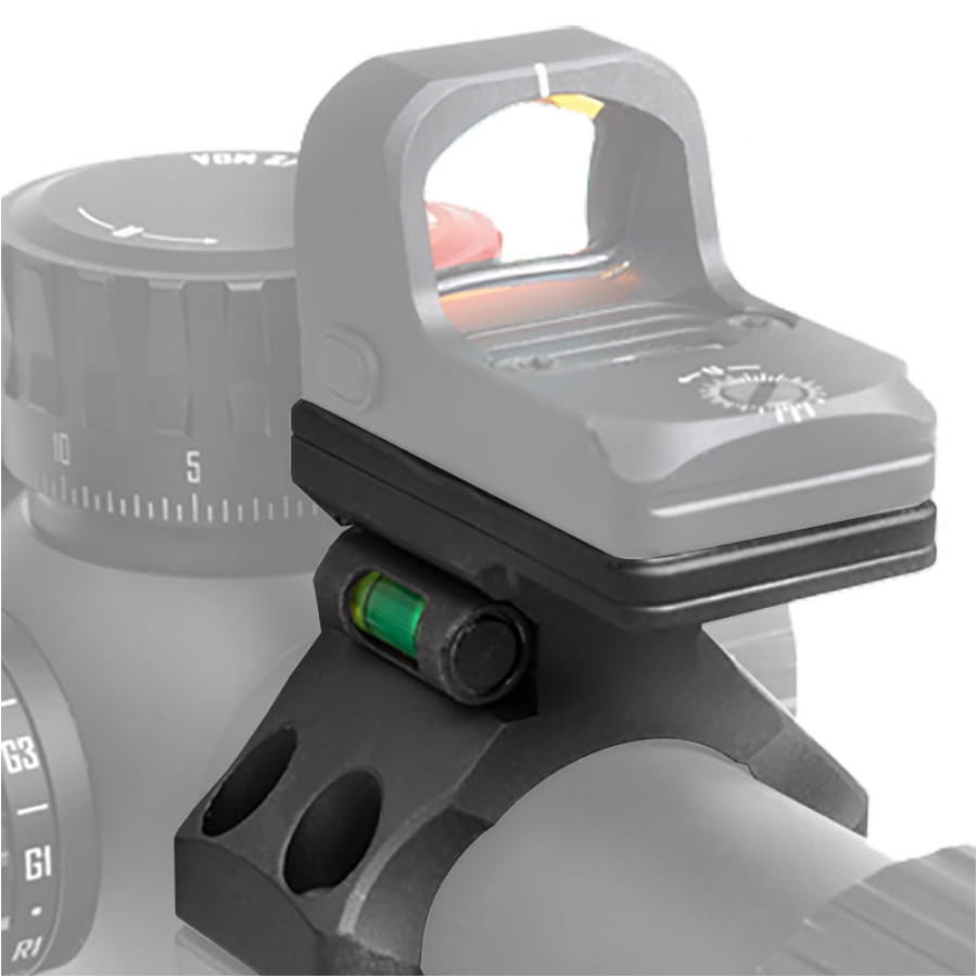 Aluminiowa obejma z poziomicą i montażem MRDS jest kompatybilna z montażami Cantilever i pierścieniami montażowym UTG ACCU-SYNC 34 mm. Montaż obejmy jest prosty i wymaga jedynie zastąpienia fabrycznego elementu, nową częścią wzbogaconą o poziomicę i montaż. Poziomica to popularny dodatek strzelecki, który ułatwia ustawianie broni w prawidłowej pozycji, przyjmowanie powtarzalnej postawy strzeleckiej, co pośrednio wpływa na precyzję i powtarzalność oddawanych strzałów. Poziomica wykorzystywana jest również do montażu optyki na broni. W odróżnieniu od większości poziomic strzeleckich ten model ma składaną konstrukcję z mocowaniem magnetycznym. Dzięki czemu w każdym momencie poziomicę możemy szybko i łatwo złożyć lub rozłożyć. Na górnej części obejmy znajduje się zintegrowana baza do montażu kolimatorów MRDS. W komplecie znajdują się 2 płytki w popularnym footprint Docter oraz RMR. Obejma ma łagodnie zaokrąglone krawędzie, które minimalizują ryzyko zaczepienia, zarysowania lub uszkodzenia innych elementów wyposażenia oraz ułatwiają dostęp do bębnów optyki.