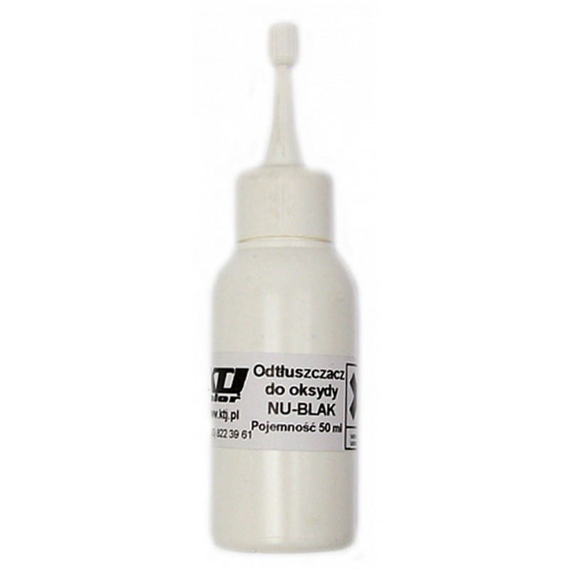Odtłuszczacz do oksydy, opakowanie o pojemności 50 ml. Jego użycie jest zalecane przed przystąpieniem do procesu oksydowania.