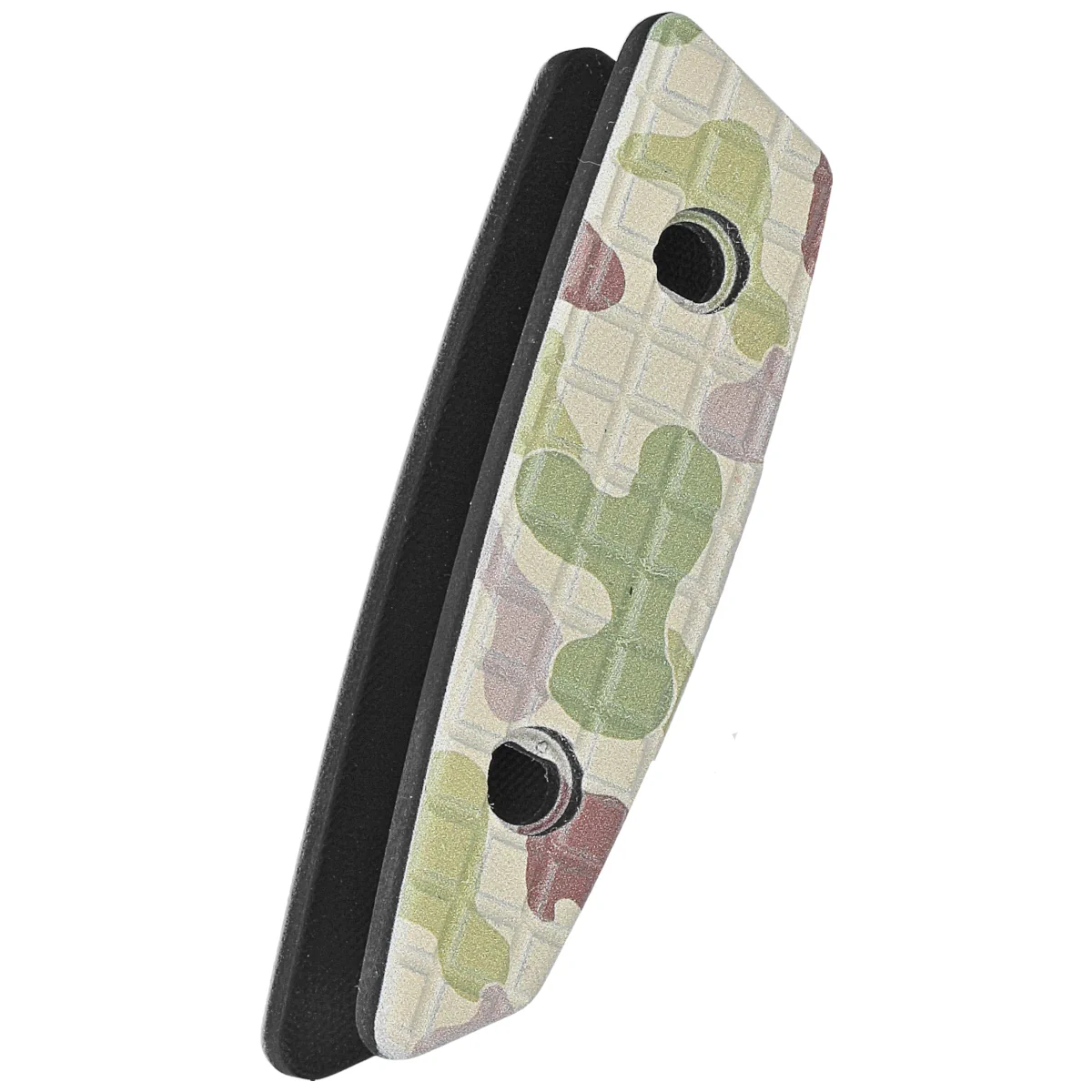 W tej wersji okładziny zostały wykonane z kompozytu G10 ozdobioną grafiką kamuflażu, z powierzchnią frezowaną w stylu Frag Grenade.