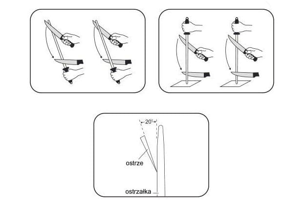 Zachowując odpowiedni kąt ostrzenia (najlepiej 20°) naostrz nóż przesuwając go od rączki do końca