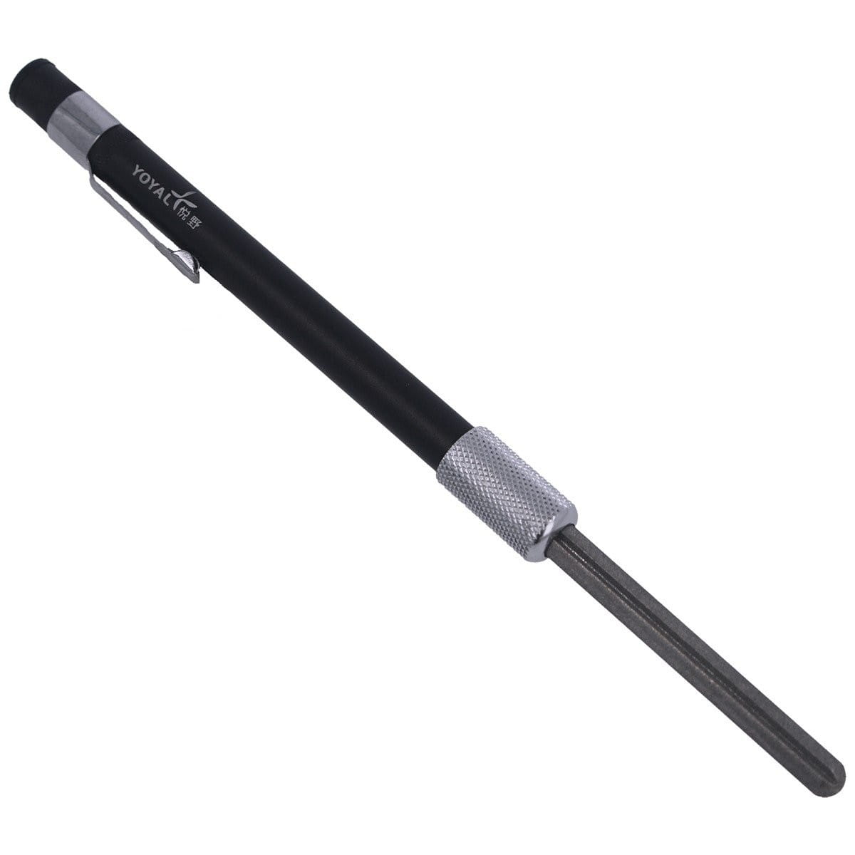 T0905D, uniwersalna ostrzarka diamentowa firmy TaideaPozwala na sprawne i szybkie naostrzenie każdego rodzaju noża oraz drobnych narzędzi. Powierzchnię ścierną pęta pokryto średniej ziarnistości monokrystalicznym diamentowym nasypem o gradacji 600. Dzięki wysuwanemu prętowi ostrzałka zajmuje mało miejsca, a dodatkowy klips pozwala przenosić ją w kieszeni jak długopis.