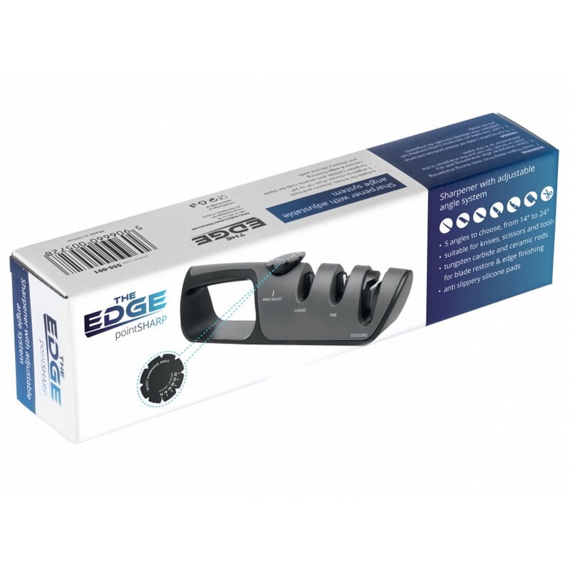 The Edge PointSHARP to wymarzona ostrzałka dla każdego posiadacza noża, wyposażona w płynną regulację kąta ostrzenia 14-24° oraz 3 strefy ostrzenia, dzięki którym wyostrzysz i wypolerujesz noże kuchenne, foldery edc, noże myśliwskie oraz wiele narzędzi domowych.