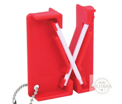 Mała kompaktowa ostrzałka, wykonana z 2 prętów ceramicznego glinu świetnie nadaje się do ostrzenia każdego rodzaju noży. Dodatkowo przy jej pomocy naostrzymy haczyki wędkarskie. Pręty ostrzące możemy usunąć do czyszczenia. Waga oraz małe wymiary sprawiają że możemy ja nosić w kieszeni, w plecaku czy jako brelok przy kluczach.