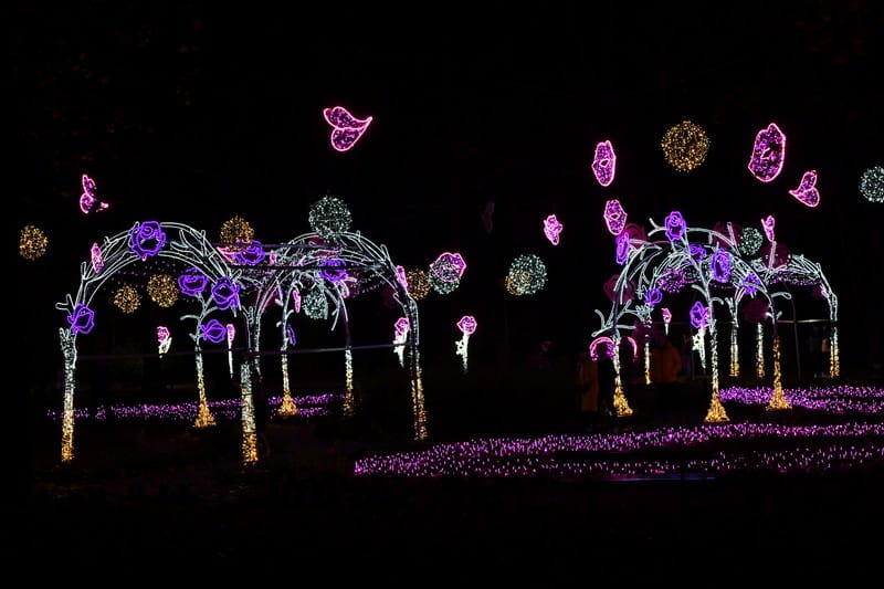 Baśniowy Ogród Światła, rozmieszczony w malowniczym Parku Źródliska w Łodzi, przenosi odwiedzających w mistyczną krainę pełną kolorów i tysięcy migoczących świateł, zamieniając park w magiczną i zaczarowaną krainę.