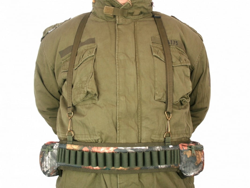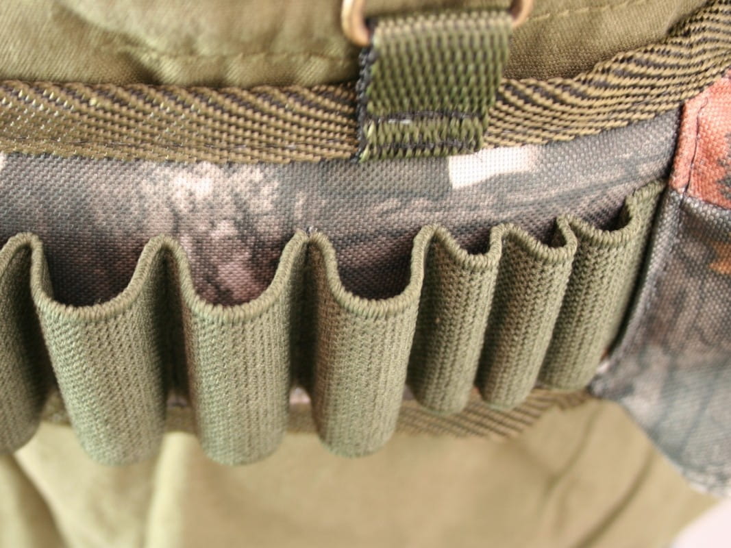Podwójnie kalendrowana guma zabezpiecza amunicję przed przypadkowym wysunięciem się. Szelki zamocowane przy pasie pozwalają równomiernie rozłożyc ciężar noszonej amunicji