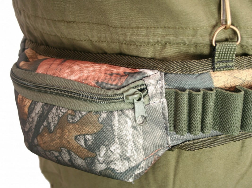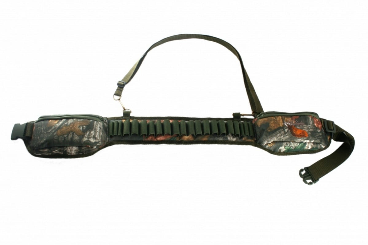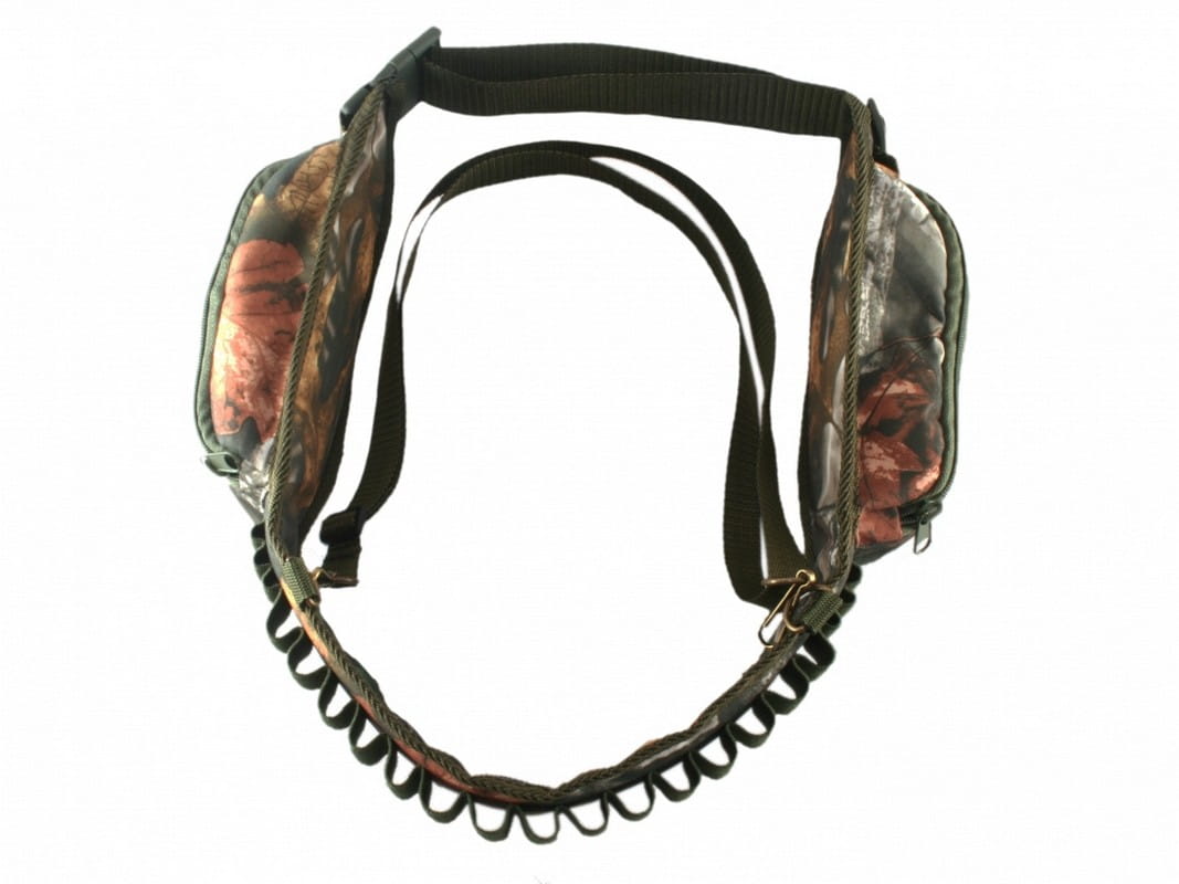 Wygodny pas na amunicję z szelkami. Wykonana z gumowanej taśmy ładownica pomieści 15 sztuk amunicji śrutowej w kalibrze 12 lub 16 mm, oraz 6 sztuk amunicji kulowej w każdym kalibrze. Po bokach umieszczono dwie pojemne kieszenie zamykane na zasuwak na drobne przedmioty np: klucze, dokumenty, telefon.  Materiał to nieprzemakalna cordura. Stabilność pasa zapewnia mocna zatrzaskowa klamra.