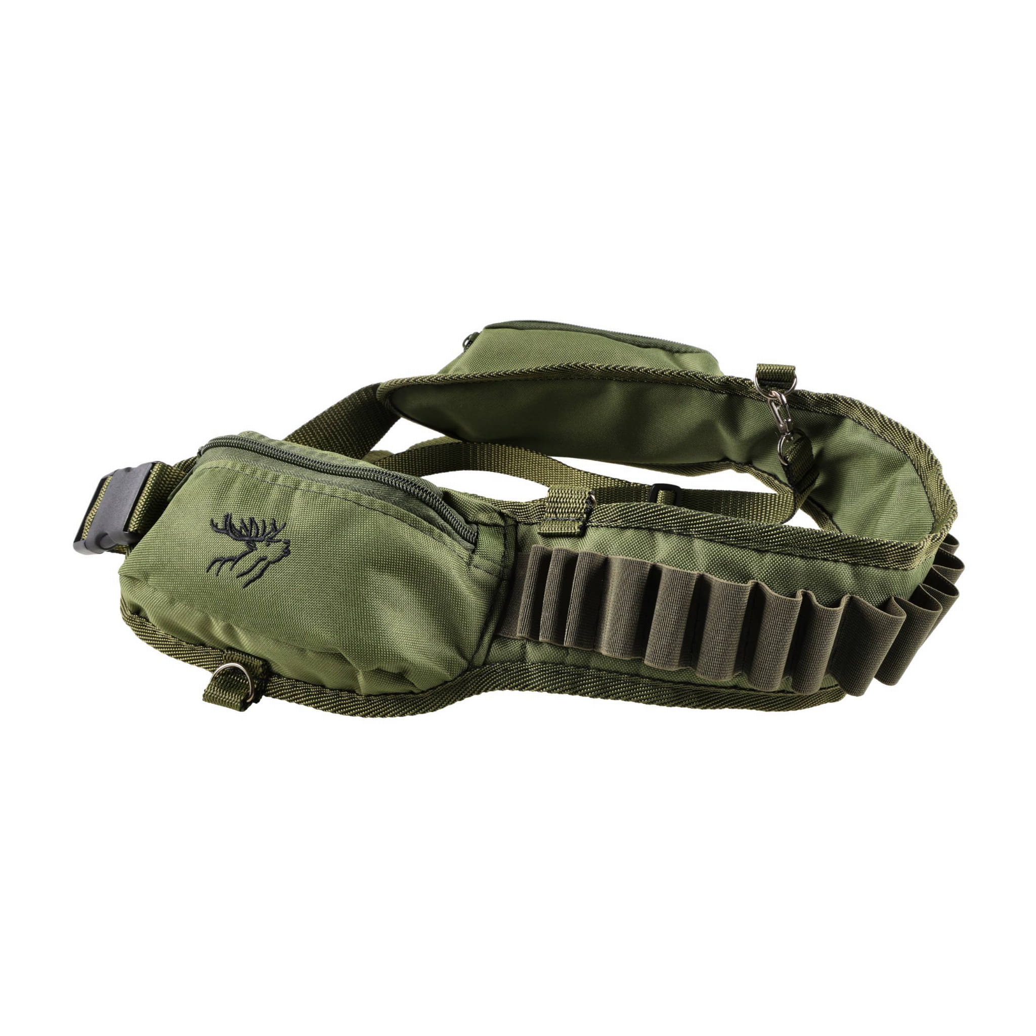 Pas na amunicję z kieszeniami P001 12/16 oliwkowy, haft jeleń ryczy