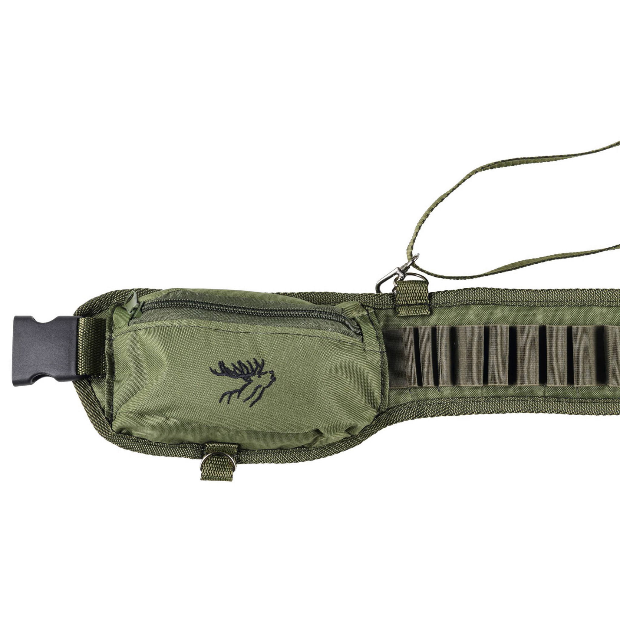 Stabilność konstrukcji zapewnia mocna zatrzaskowa klamra, a regulowane szelki pozwalają na równomierne rozłożenie ciężaru amunicji, zwiększając komfort użytkowania. Estetyki dodaje wyszyty emblemat myśliwski, który podkreśla charakter produktu i doskonale wpisuje się w łowiecką stylistykę.