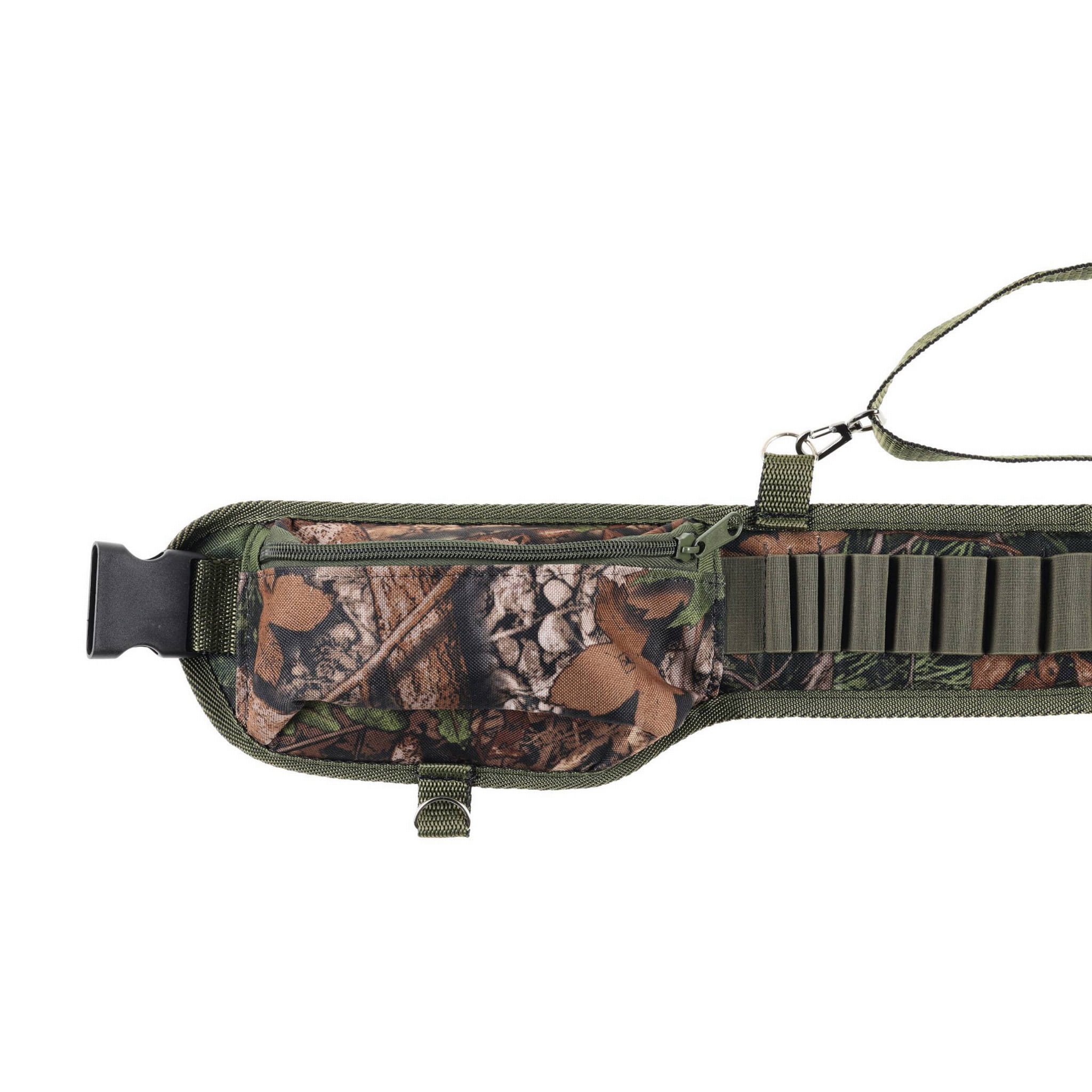 Stabilność konstrukcji zapewnia mocna zatrzaskowa klamra, a regulowane szelki pozwalają na równomierne rozłożenie ciężaru amunicji, zwiększając komfort użytkowania. Estetyki dodaje wyszyty emblemat myśliwski, który podkreśla charakter produktu i doskonale wpisuje się w łowiecką stylistykę.