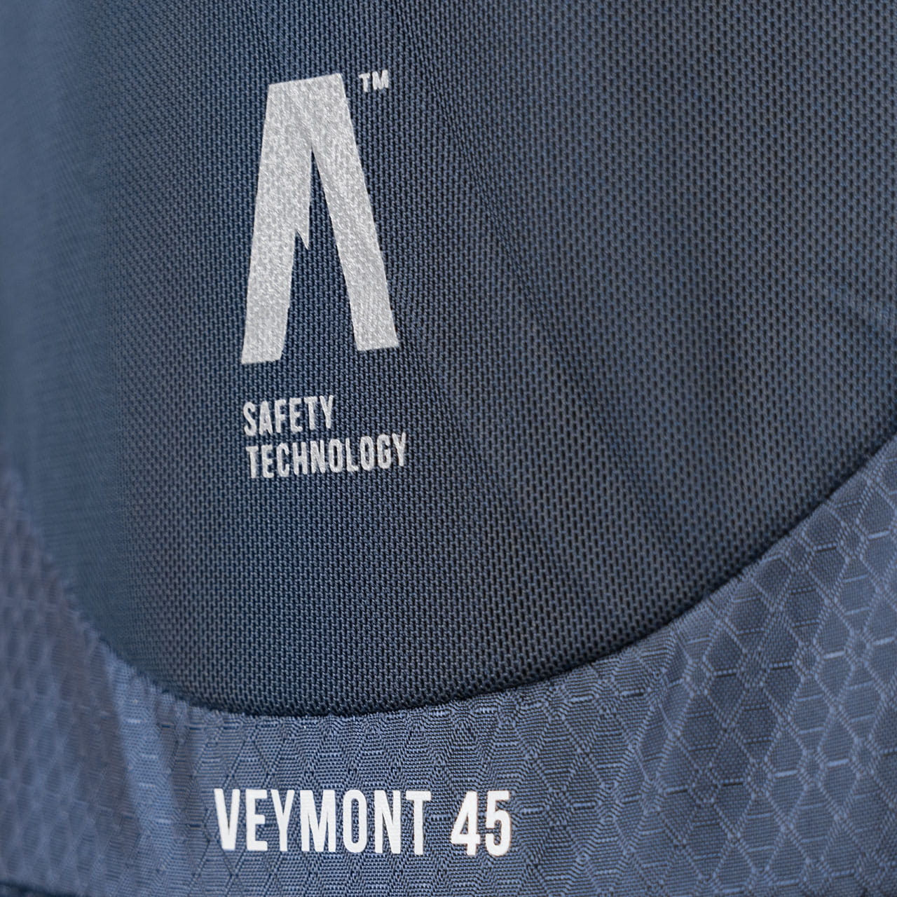 Plecak został dobrze przemyślany pod kątem trwałości oraz skutecznego zabezpieczenia zawartości. Zastosowany tu nylon o gęstości 210 denierów został uformowany w tkaninę D-Tech, działającą na podobnej zasadzie jak ripstop. Struktura zwiększa wytrzymałość materiału, jednocześnie eliminując ryzyko powiększania się dziury jeśli takowa by w plecaku powstała. Sam system dostępu za pomocą klapy w znaczący sposób ogranicza ryzyko dostania się wody do środka, a na wypadek ulewnych deszczy, do modelu Veymont otrzymujemy ukryty w dolnym przedziale pokrowiec, który zagwarantuje nam pełną wodoodporność. Posiada on intensywny, żółty kolor co sprawi, że będziemy dobrze widoczni nawet w bardzo niesprzyjających warunkach.