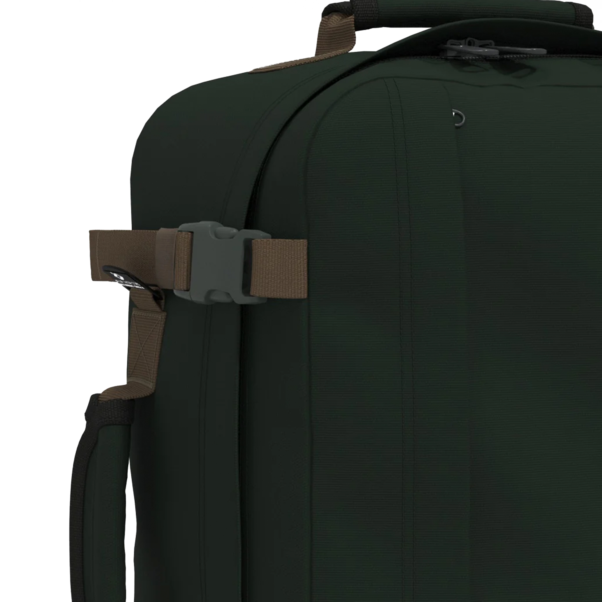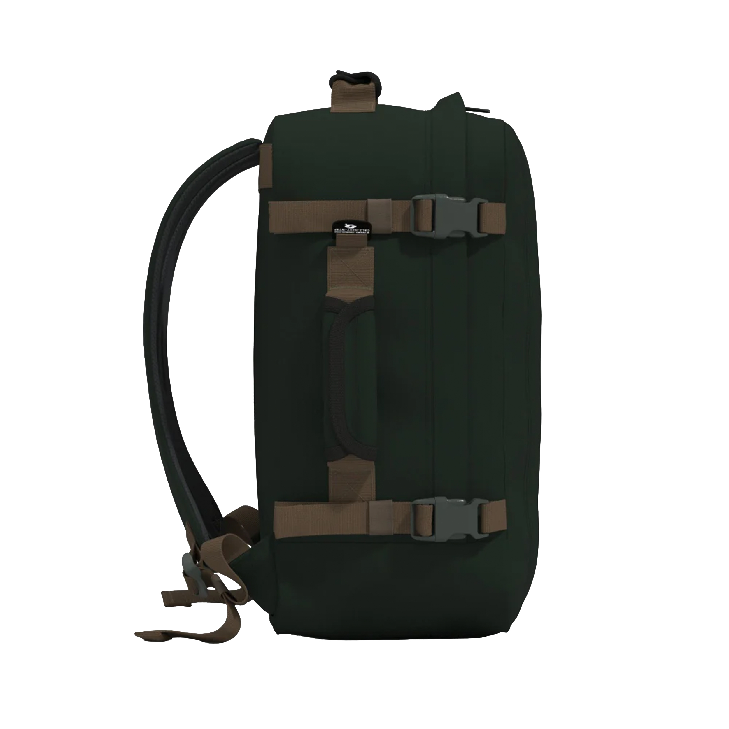 Szukasz bagażu, który sprawdzi się w samolocie i na co dzień w mieście? CabinZero Classic 36 litrów w kolorze ciemnopzielonym to wszechstronny plecak hybrydowy: pojemny jak torba podróżna, a przy tym zwinny i lekki jak najlepsze plecaki miejskie. Minimalistyczny design pasuje do każdej stylizacji i scenariusza – od lotu na city break, przez dojazdy do pracy, po weekendowe wypady. Spełnia wymagania płatnego bagażu podręcznego w wybranych liniach lotniczych, więc pakujesz więcej bez rezygnacji z wygody.
