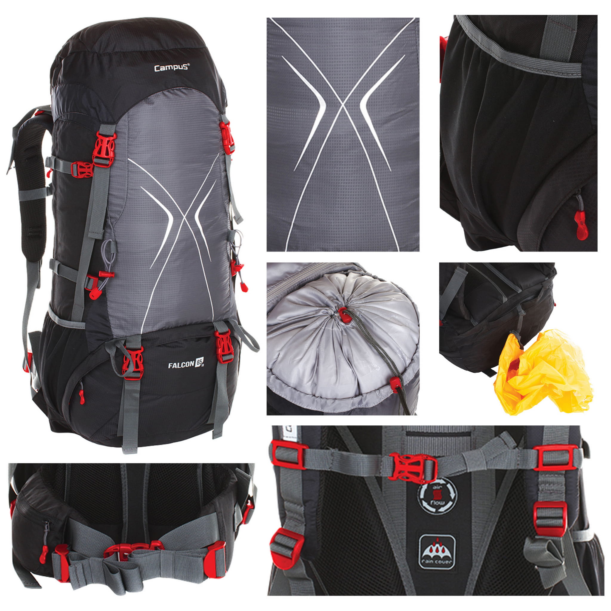 Plecak trekkingowy Campus FALCON 65 + 10L grafitowo/szaro/czerwony