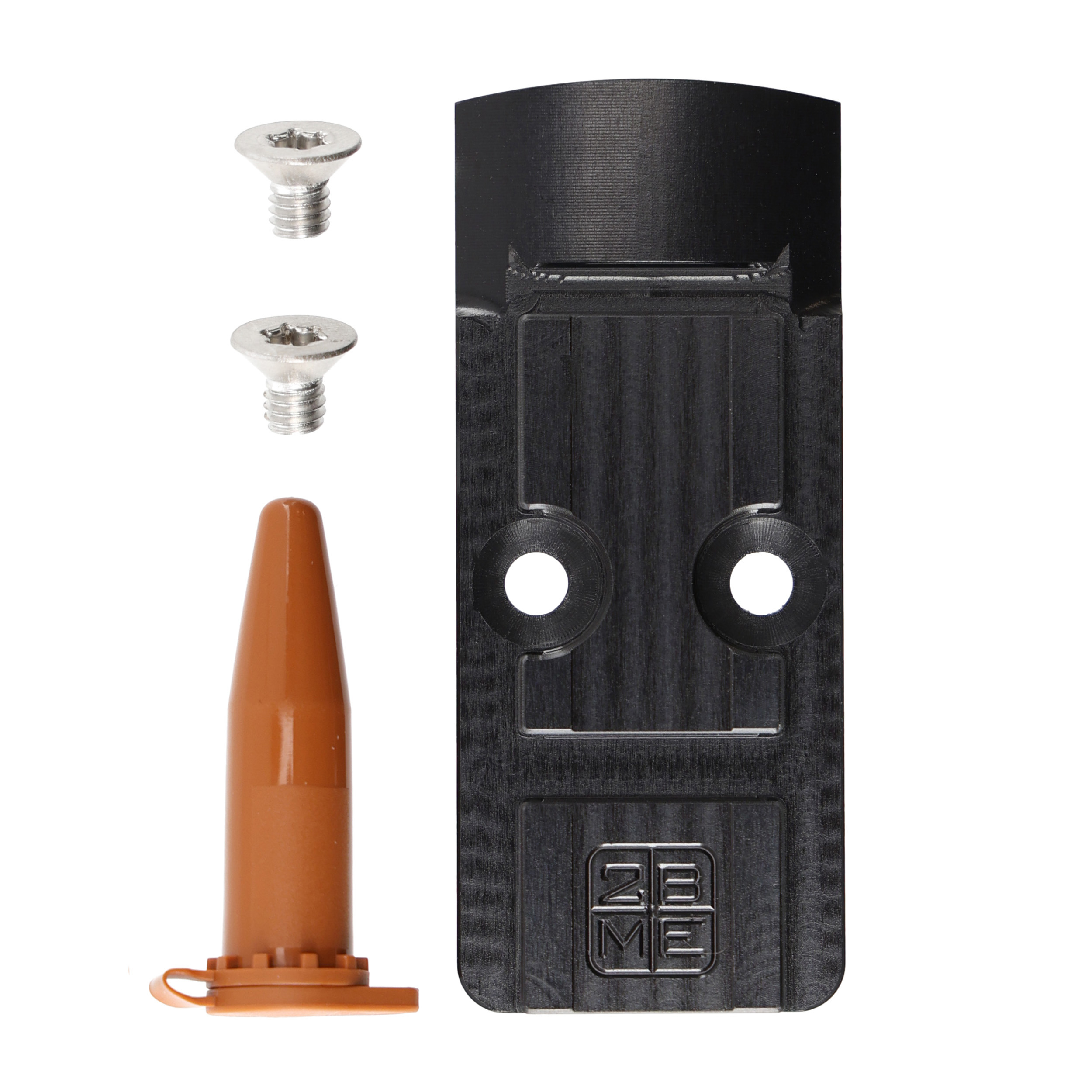 Podstawy wykonane są z aluminium lotniczego 7075-T6, dzięki czemu są niezwykle wytrzymałe oraz ekstremalnie lekkie (w zależności od modelu ok 8g.). Płytkę wykończono metodą twardego anodowania o specyfikacji wojskowej (MIL-SPEC), dzikei czemu jej powierzchnia ma zwiększoną odporność na zarysowania i wytarcie. Anodowanie to proces, który utwardza powierzchnię aluminium oraz chroni przed utlenianiem. Płytki montażowe TBME wyróżnia nie tylko trwałe wykończenie i idealne dopasowanie do broni, ale również możliwość niezwykle niskiego osadzenia kolimatora na broni. Dzięki zastosowaniu sond pomiarowych płytki są idealnie wymiarowane i dopasowywane do fabrycznego frezu broni. Aby zapewnić stabilny i niezawodny montaż kolimatora, w płytce zastosowano system stalowych wymiennych wkładek „Quad Lock”, które umożliwiły wykorzystanie śrub z mocnym, wielozwojnym gwintem (z wyłączeniem modeli mocowanych na tzw. jaskółczy ogon). W zestawie znajdują się wszystkie elementy niezbędne do montażu kolimatora na broni: najmocniejsze na rynku 4 śruby montażowe torx klasy A4 ze stali nierdzewnej, tubka kleju do gwintów, oraz instrukcja montażu.