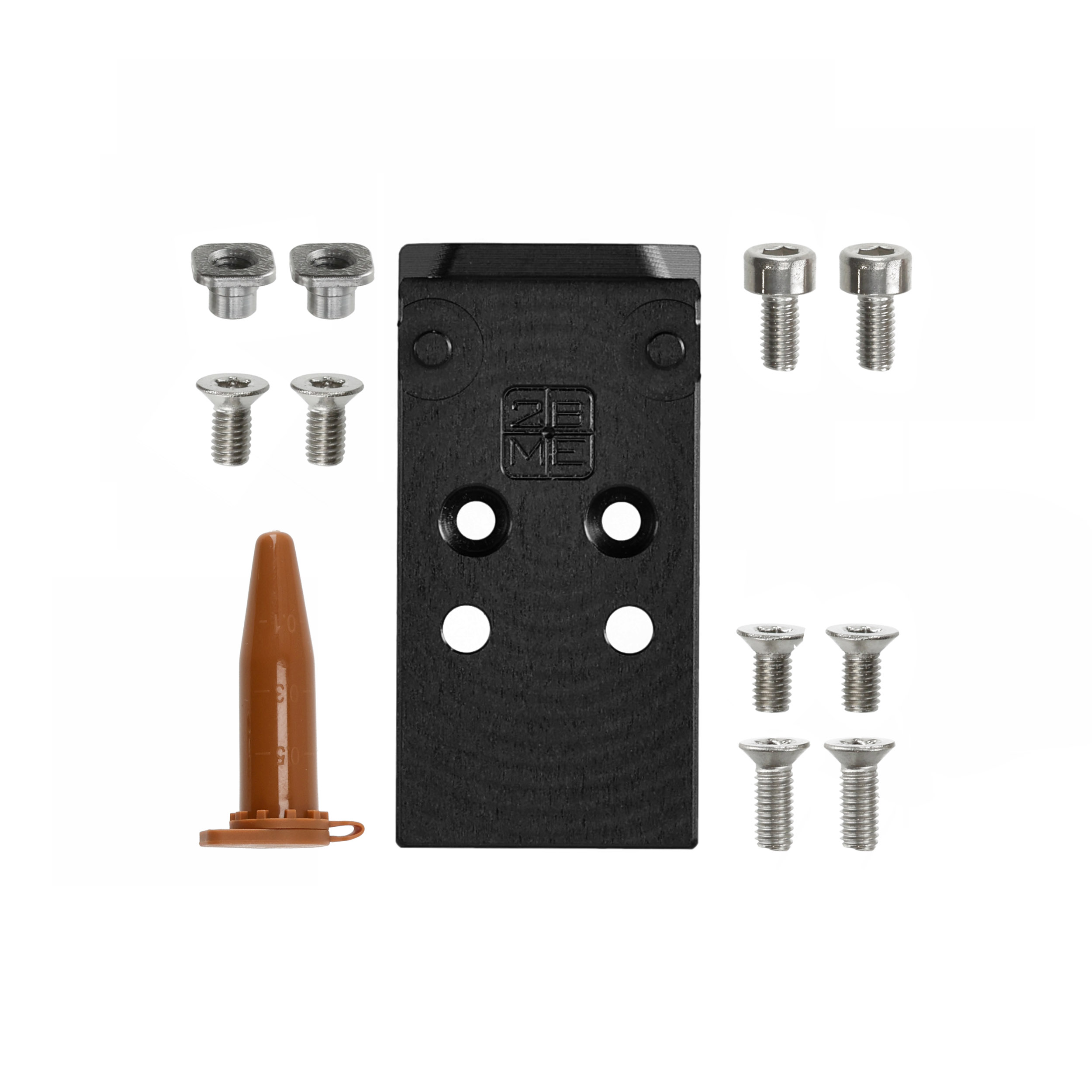 Dzięki zastosowaniu sond pomiarowych płytki są idealnie wymiarowane i dopasowywane do fabrycznego frezu broni. Aby zapewnić stabilny i niezawodny montaż kolimatora, w płytce zastosowano system stalowych wymiennych wkładek „Quad Lock”, które umożliwiły wykorzystanie śrub z mocnym, wielozwojnym gwintem (z wyłączeniem modeli mocowanych na tzw. jaskółczy ogon). W zestawie znajdują się wszystkie elementy niezbędne do montażu kolimatora na broni: najmocniejsze na rynku 4 śruby montażowe torx klasy A4 ze stali nierdzewnej, tubka kleju do gwintów, oraz instrukcja montażu.