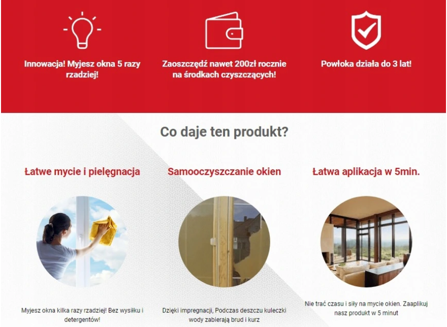 Oszczędzasz czas i pieniądze. Myjesz okna kilka razy rzadziej! Bez wysiłku i detergentów!