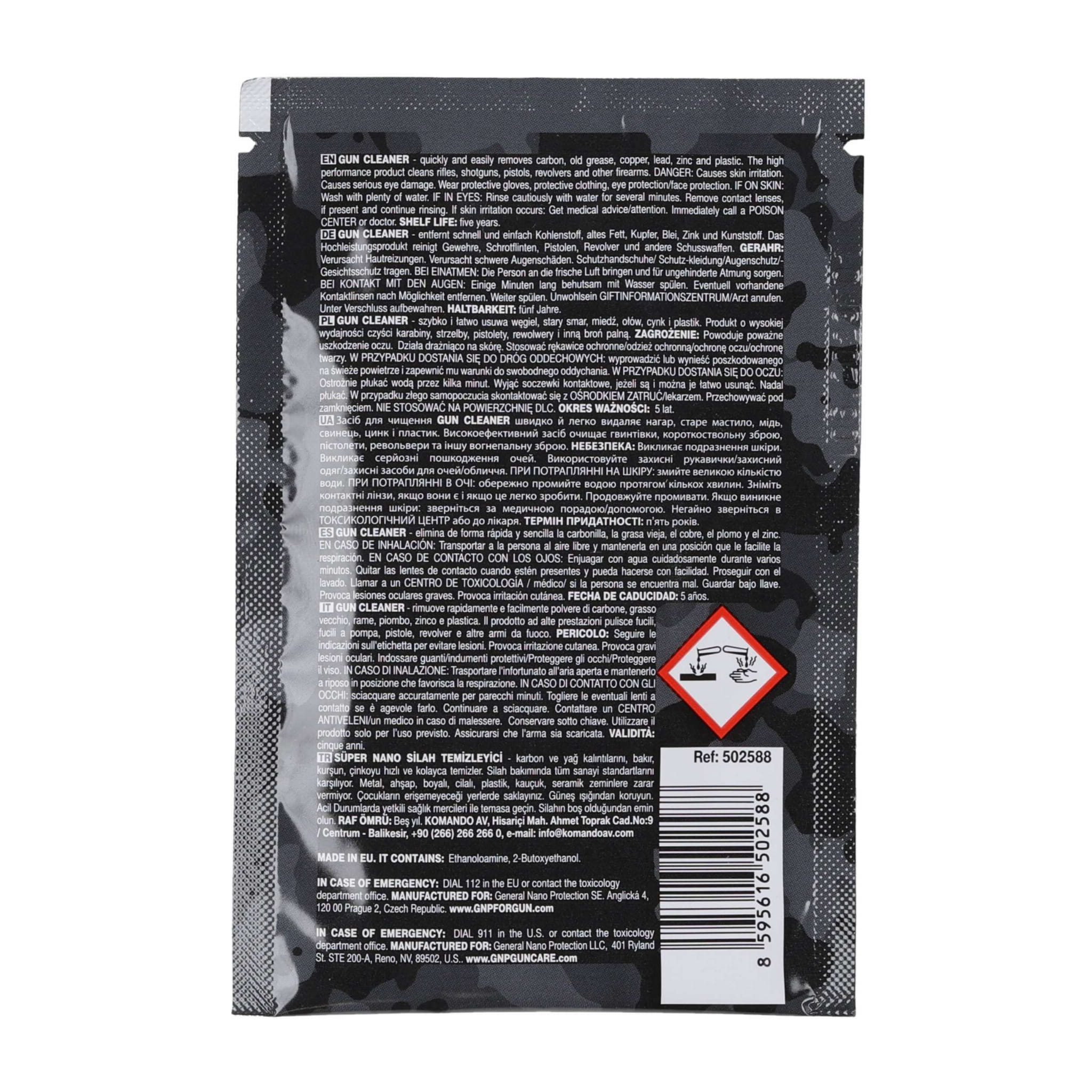 Środek czyszczący do broni General Nano Protection w formie poręcznej, jednorazowej saszetki to uniwersalny środek do czyszczenia i konserwacji wszystkich elementów broni, który skutecznie usuwa nagar i zapieczone smary, wypiera wilgoć, smaruje i zabezpiecza przed korozją. Regularne stosowanie preparatu wydłuża żywotność broni.