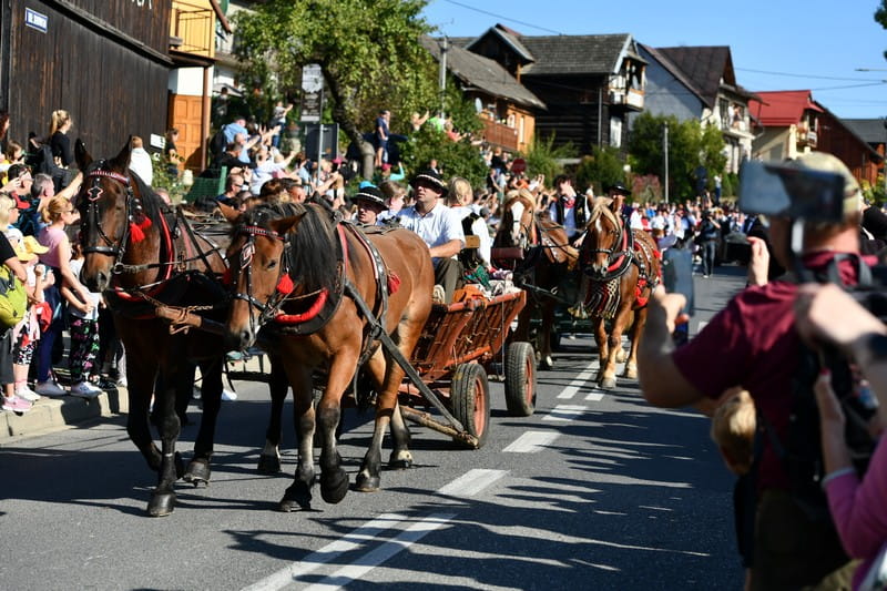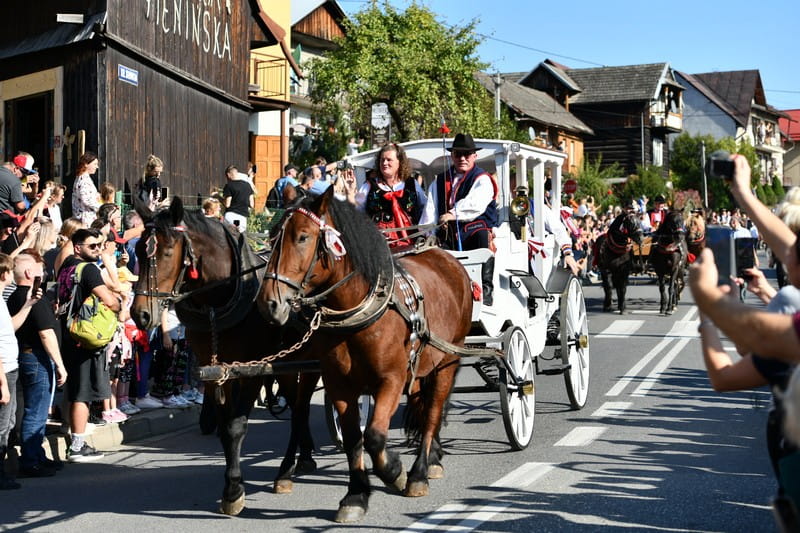 Jesienny redyk w Szczawnicy był poprzedzony barwnym przejazdem góralskiej banderii konnej i powozów konnych, które towarzyszyły zespołom regionalnym i oficjalnym gościom. To malownicze widowisko, które wprowadzało w klimat góralskich tradycji już na samym początku wydarzenia.