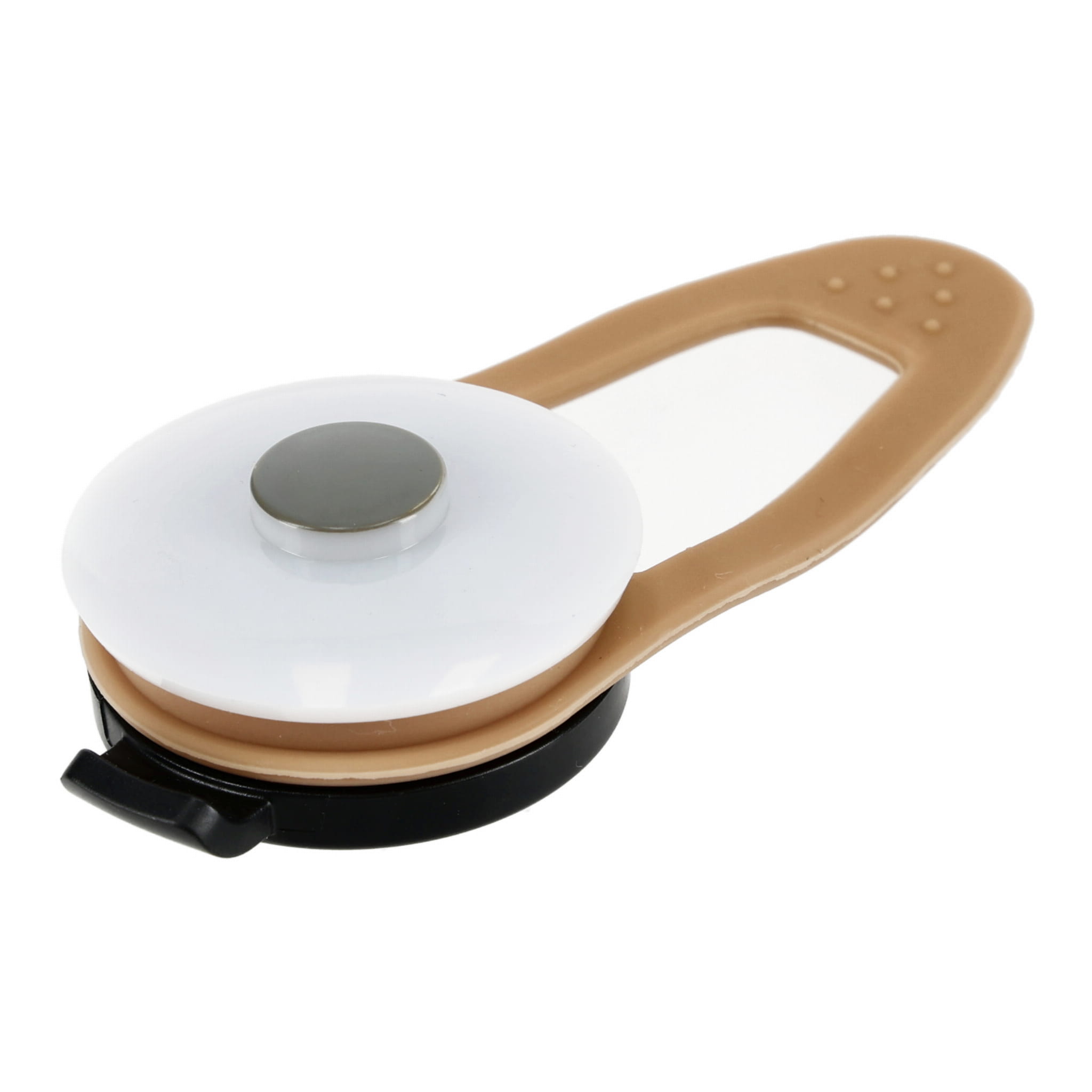 Świecąca przypinka, przystosowana jest do mocowania na obroży psa, dzięki specjalnemu elastycznemu uchwytowi.