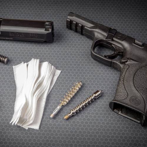 Bore Max Speed Clean System to zestaw do czyszczenia luf pistoletowych w kalibrze .45. Zestaw zawiera szczotkę, przecieraki i uchwyt do przeciaraków.