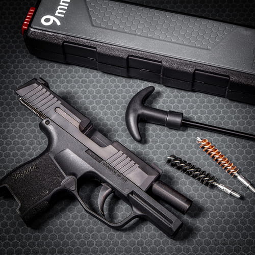 Zawiera niezbędne narzędzia potrzebne do czyszczenia pistoletów i rewolwerów kalibru 9 mm / .357 / .38