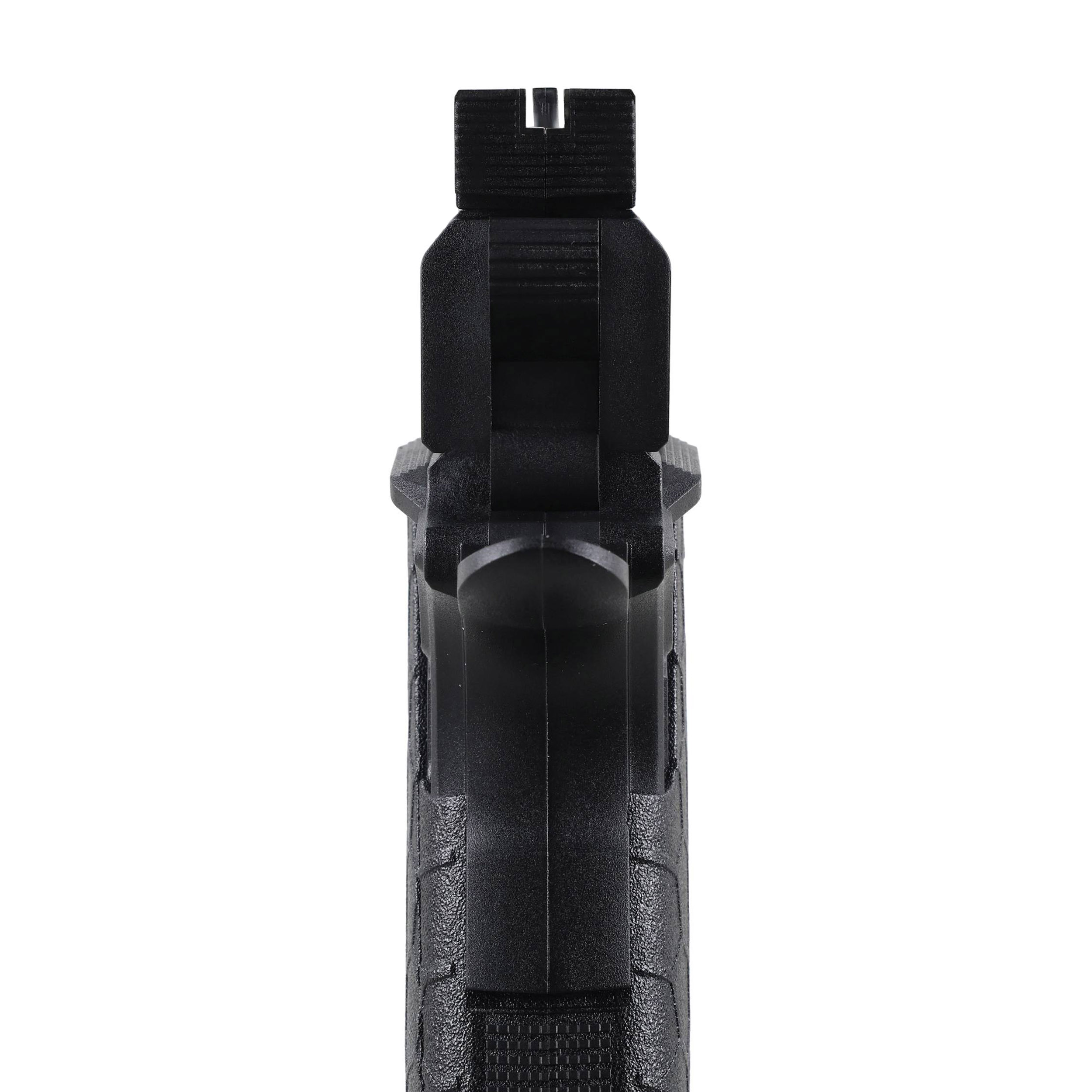 Pistolet wyposażono w wygodny i nastawny bezpiecznik obsługiwany palcem. Dodatkowo zastosowano tu dwurzędowy magazynek wsuwany w rękojeść o pojemności 14 kulek.