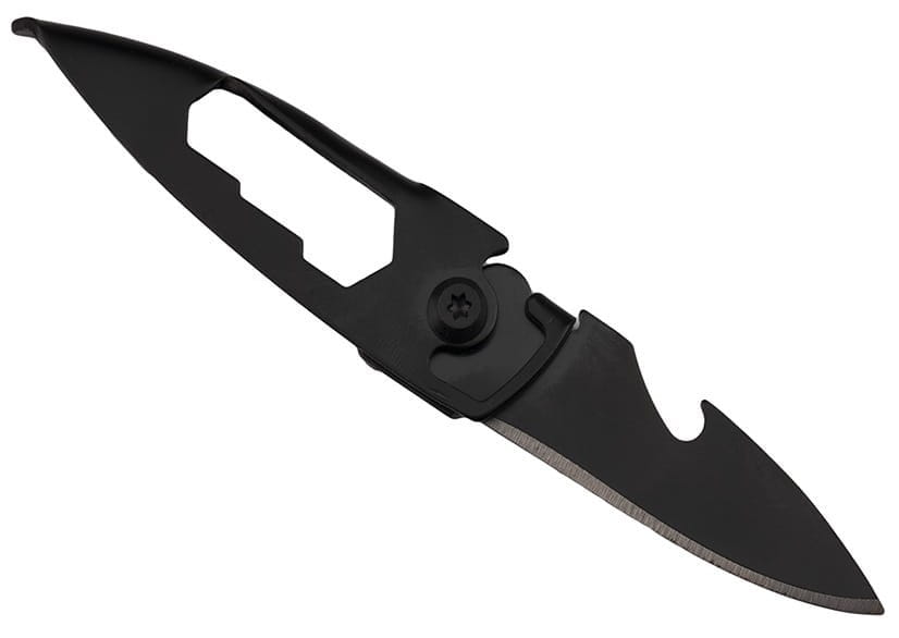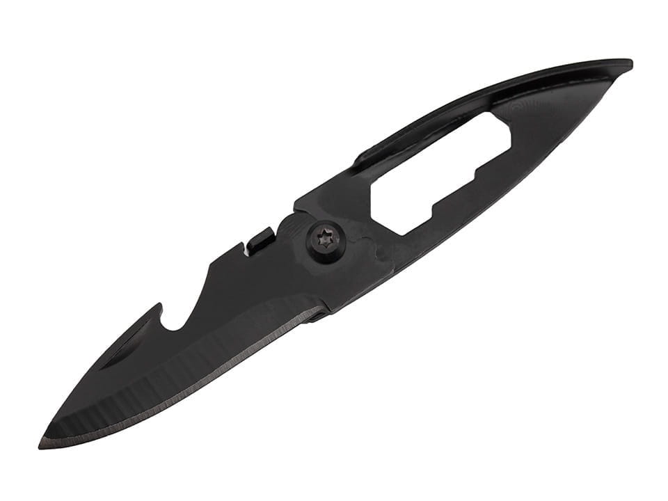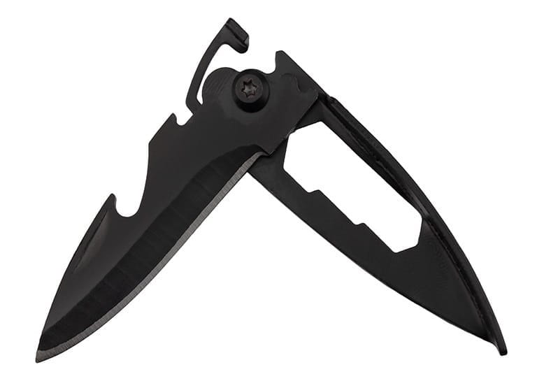 Wielofunkcyjny nóż kieszonkowy, który oprócz tradycyjnego ostrza posiada otwieracz oraz klucze oczkowe w rękojeści.