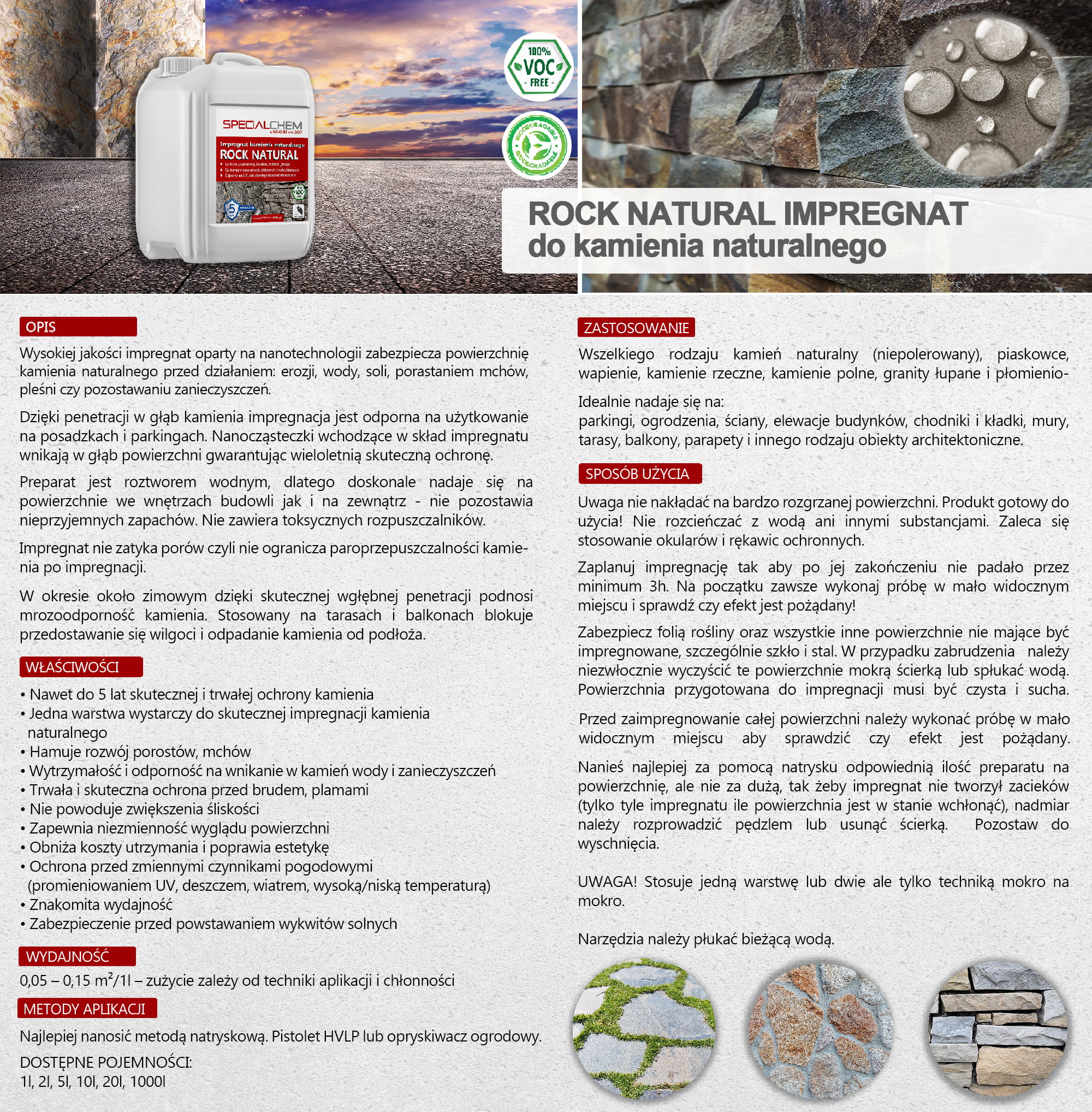 Impregnat zabezpiecza powierzchnię kamienia naturalnego przed działaniem: erozji, wody, soli, porastaniem mchów, pleśni czy pozostawaniu zanieczyszczeń. Dzięki penetracji w głąb kamienia impregnacja jest odporna na użytkowanie na posadzkach i parkingach. Nanocząsteczki wchodzące w skład impregnatu wnikają w głąb powierzchni gwarantując wieloletnią skuteczną ochronę.