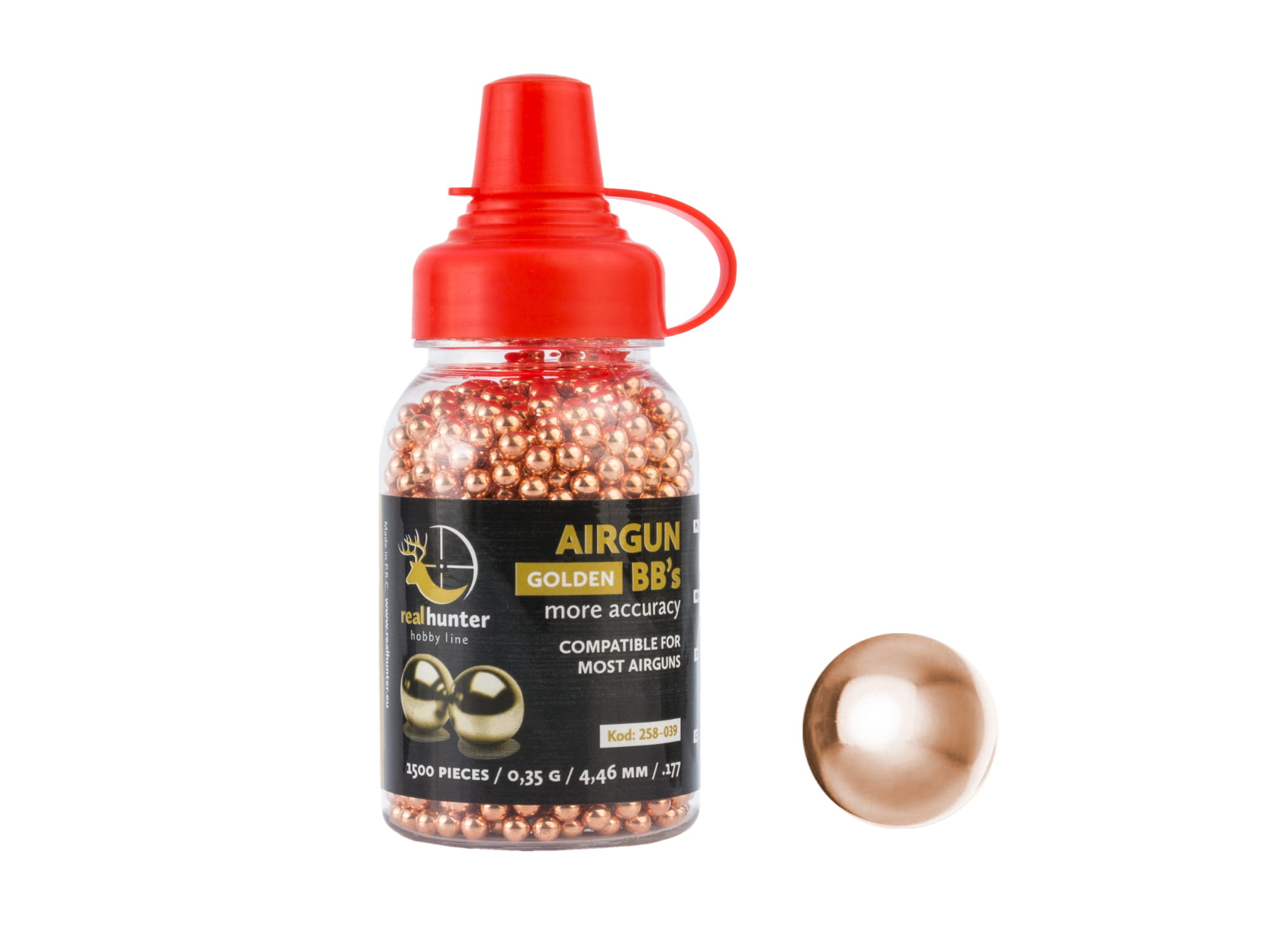 Wysokiej klasy powlekany miedzią śrut stalowe BB's w kalibrze 4,46 mm marki RealHunter.