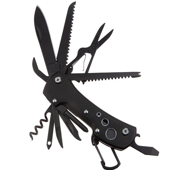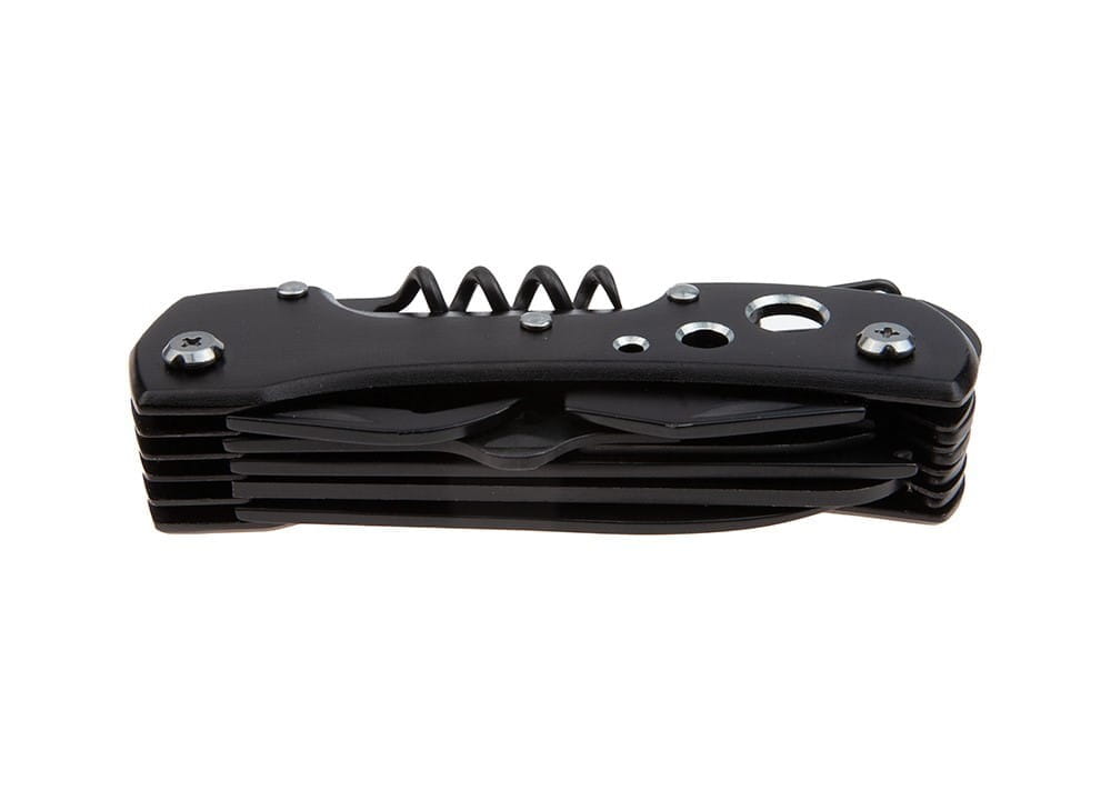 Ten niewielki scyzoryk skrywa aż 14 funkcjonalnych narzędzi takich jak: nóż, piła, skrobak do ryb, otwieracze do puszek i butelek, śrubokręty itp.