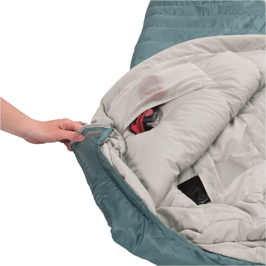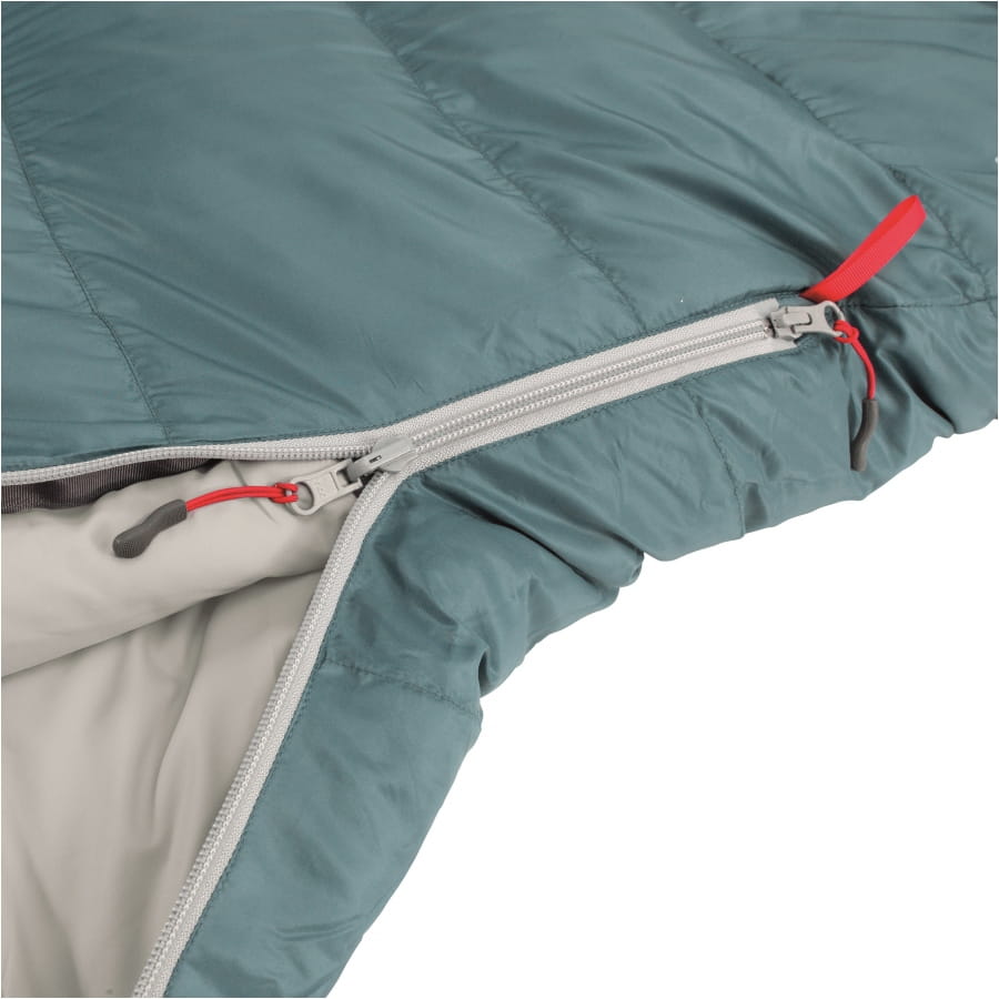 Kształt typu mumia zapewnia szybszy wzrost temperatury wewnątrz oraz zapobiega utracie ciepła. W niższych temperaturach sprawdza się również połączenie kołnierza termicznego z listwą umieszczoną przy suwaku, co dodatkowo wpływa na zatrzymanie ciepła.