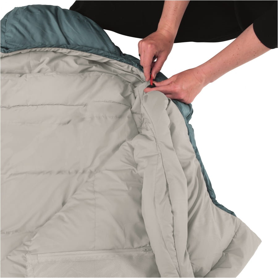 Funkcja Zip Together jest niezwykle przydatna dla osób podróżujących w parze, używających śpiworów o przeciwstawnych zamkach. Ta opcja umożliwia połączenie ze sobą dwóch śpiworów, co zapewnia większy komfort oraz lepsze utrzymanie ciepła.