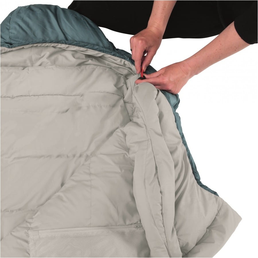 Funkcja Zip Together jest niezwykle przydatna dla osób podróżujących w parze, używających śpiworów o przeciwstawnych zamkach. Ta opcja umożliwia połączenie ze sobą dwóch śpiworów, co zapewnia większy komfort oraz lepsze utrzymanie ciepła.