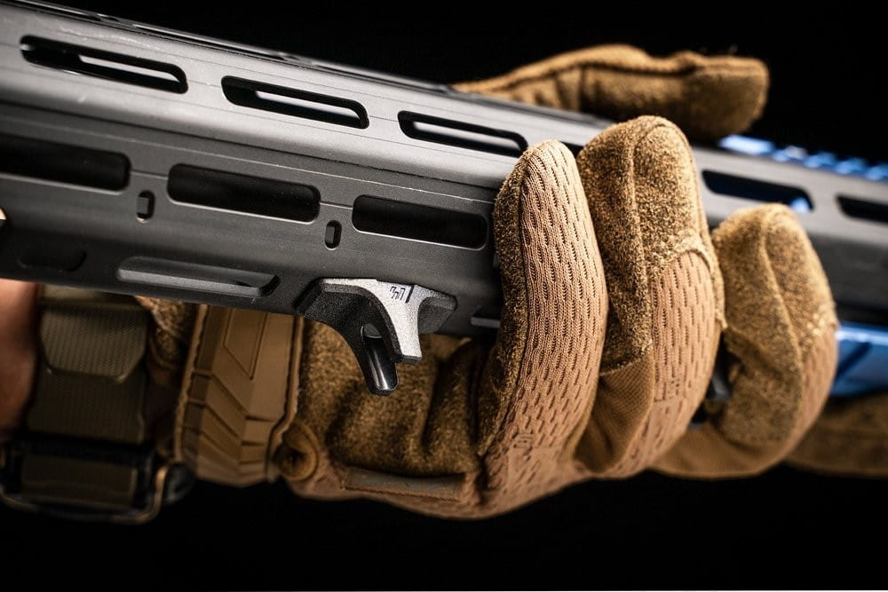 Bikini Hand Stop zrobiono z lekkiego polimeru, a uniwersalna obustronna konstrukcja umożliwia montaż w dowolnej pozycji. Chwyt jest kompatybilny z szynami M-LOK.