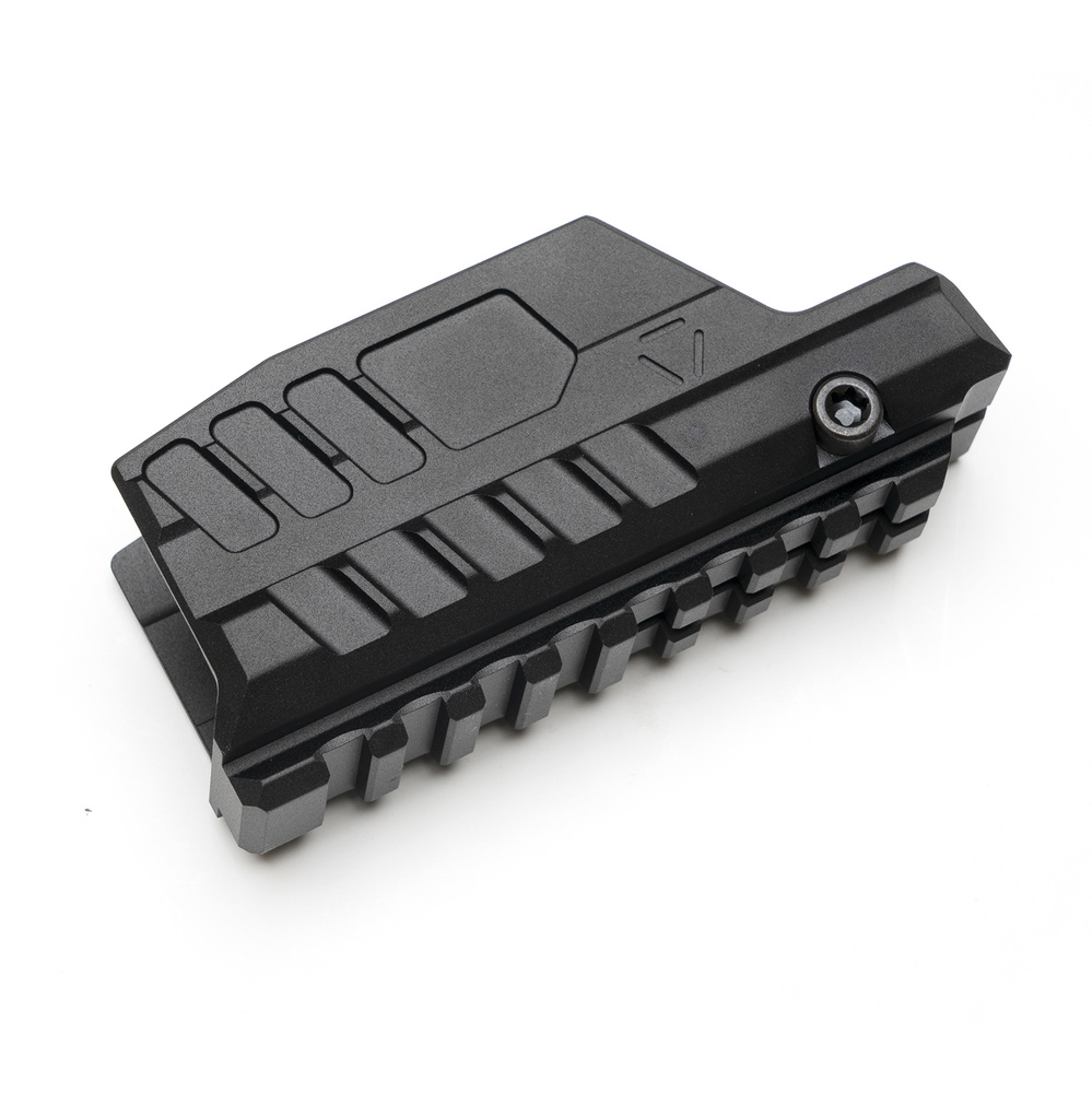 Dzięki masywniejszej, w porównaniu z modelem bazowym, konstrukcji i pełnemu pokryciu przestrzeni pod lufą skutecznie izoluje strefę chwytu wspierającej dłoni od ciepła i podmuchów. Zintegrowana szyna Picatinny pozwala na montaż dodatkowych akcesoriów, np. latarki do broni krótkiej. Element pasuje również do większości ram pistoletów o maksymalnej szerokości 27 mm i szyną Picatinny.