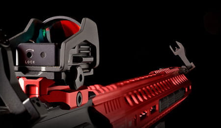 - Układ co-witness z przyrządami A2 lub SI Sidewinder - Baza montażu z aluminium 6061-T6 wymagająca 5 slotów na szynie RIS