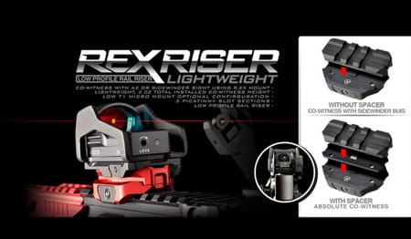 Montaż RIS R.EX Riser w zestawie z elementami podwyższającymi, umożliwiającymi stosowanie kolimatora w konfiguracji co-witness z przyrządami typu A2.