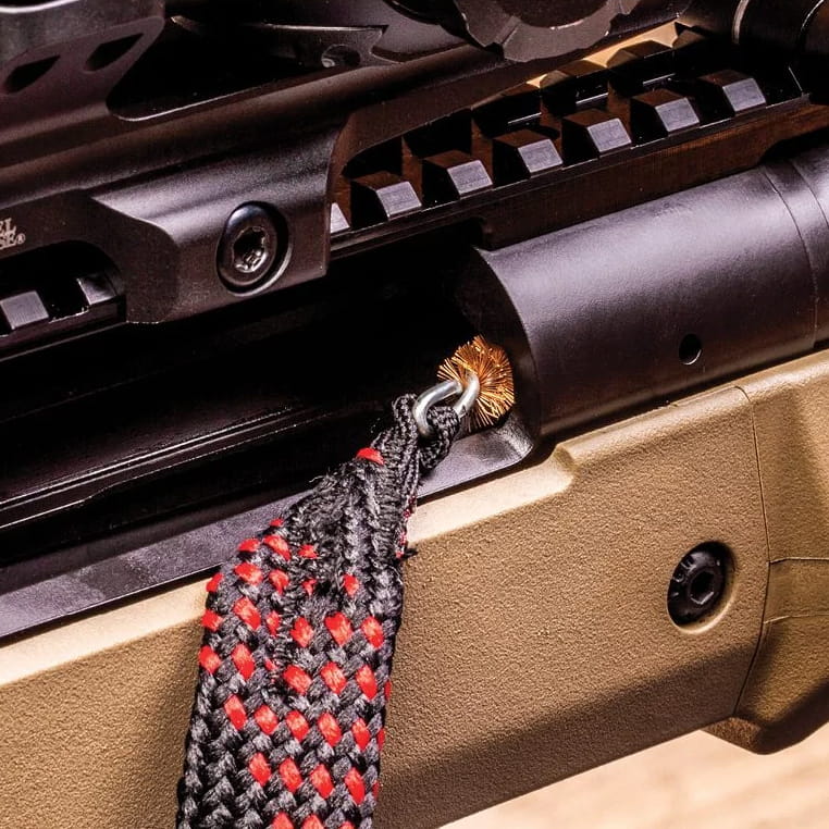 Akcesoria do czyszczenia broni Real Avid to idealny wybór dla najbardziej wymagających użytkowników. Sznur do czyszczenia lufy Bore Boss wyróżnia się na tle konkurencji niezwykle przemyślanym pojemnikiem, który pozwala na przechowywanie ubrudzonego sznura bez ryzyka zanieczyszczenia otoczenia. Co więcej, element ten służy również jako chwyt, pozwalając na wygodne przeciągnięcie sznura przez lufę. Dzięki połączeniu miedzianej szczotki z plecionym, nylonowym mopem, Bore Boss skutecznie zbiera pozostałości z gwintu, jednocześnie rozprowadzając preparat konserwujący równomiernie po jego powierzchni.