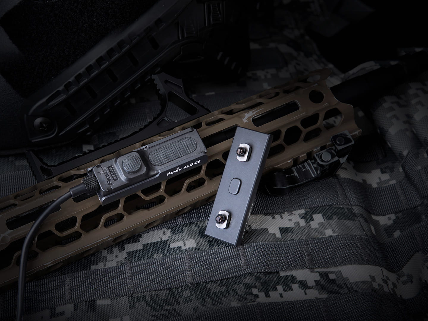 Fenix ALG-06 to uchwyt włącznika żelowego, który pozwala na szybkie i wygodne mocowanie przycisku na łożu M-LOK.