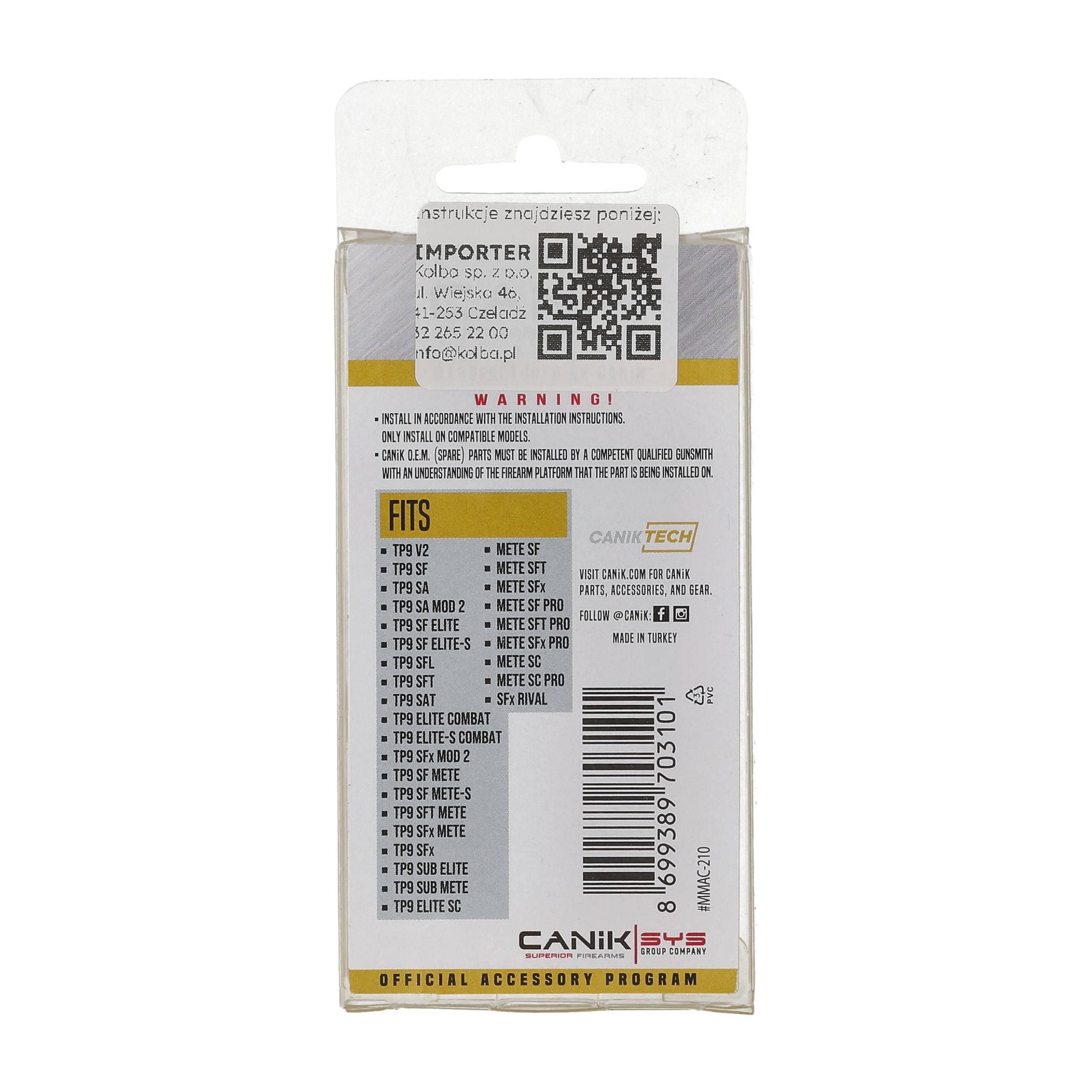 Szyna spustowa to serce mechanizmu spustowego, a Canik zadbał o to, by jej działanie było perfekcyjne. Wykonana z wysokiej jakości stali i wyprodukowana zgodnie z rygorystycznymi tolerancjami fabrycznymi, gwarantuje gładką pracę mechanizmu spustu, bez zacięć i luzów, które mogą wpływać na celność i bezpieczeństwo użytkowania.