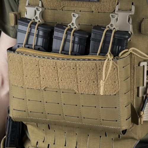 Freemason Modular Front Panel BL to innowacyjny modułowy panel przedni stworzony z myślą o kamizelkach taktycznych. Wykonany z trwałej laminowanej Cordury 500D gwarantuje długotrwałe użytkowanie nawet w najtrudniejszych warunkach terenowych. W zestawie znajdują się m.in. trzy ładownice na magazynki AR, dwie na magazynki pistoletowe oraz dwie kieszenie administracyjne o szerokości 10 cm z klapą, a także jedna o szerokości 23 cm z zamkiem.